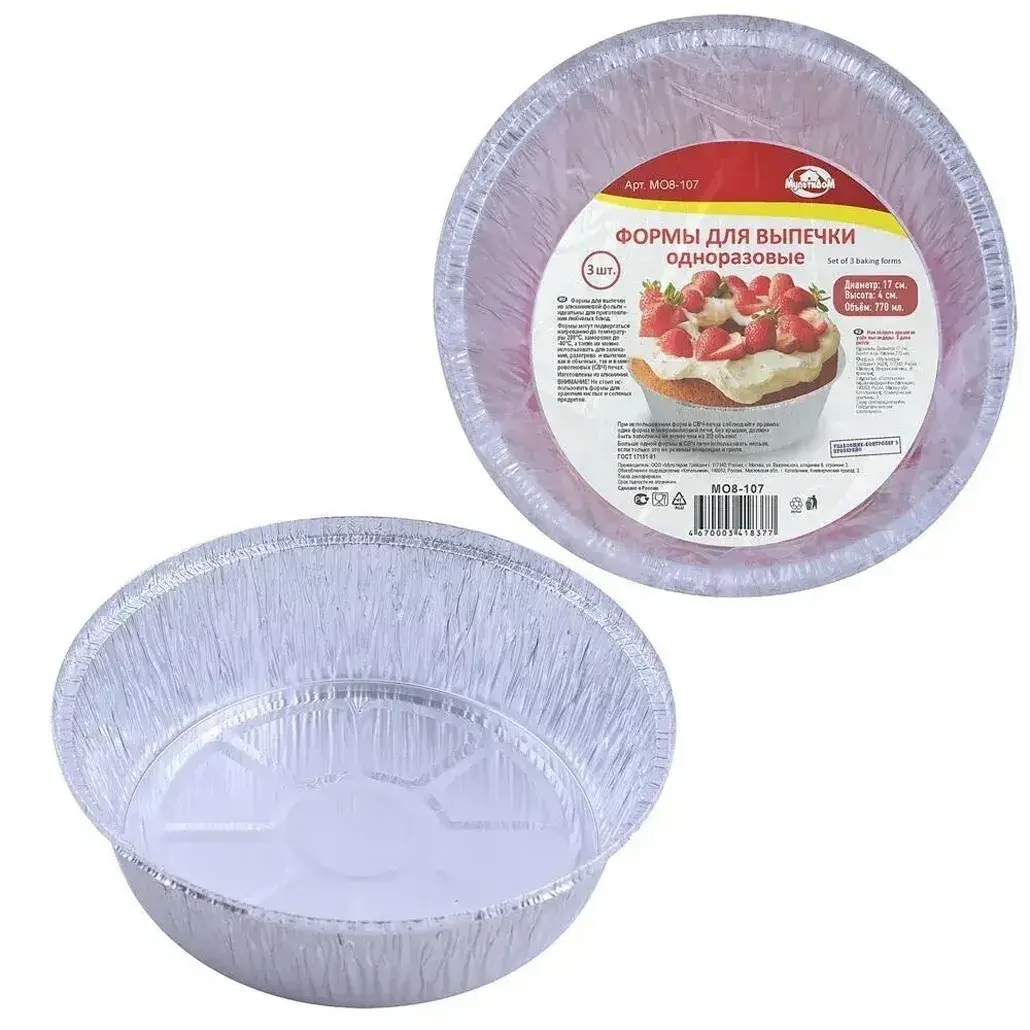 Набор из трех одноразовых алюминиевых форм для выпечки станет вашим надежным помощником на кухне. Благодаря удобным размерам и прочному материалу, вы сможете легко готовить десерты, запеканки и многое другое, экономя время на мытье посуды.