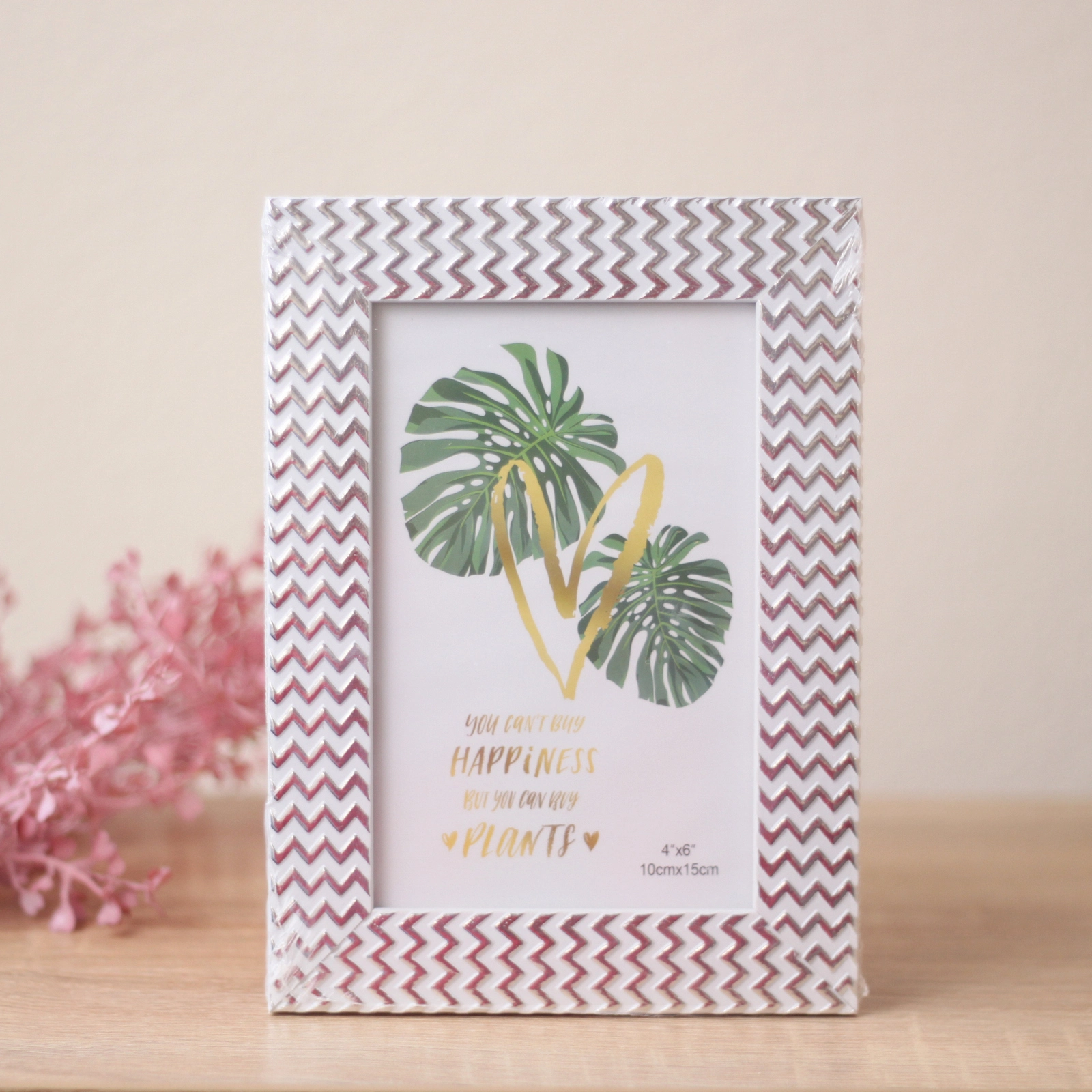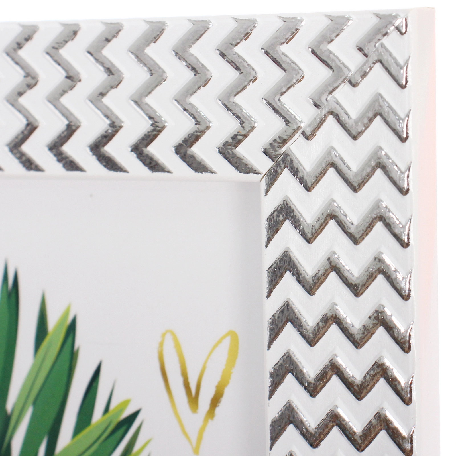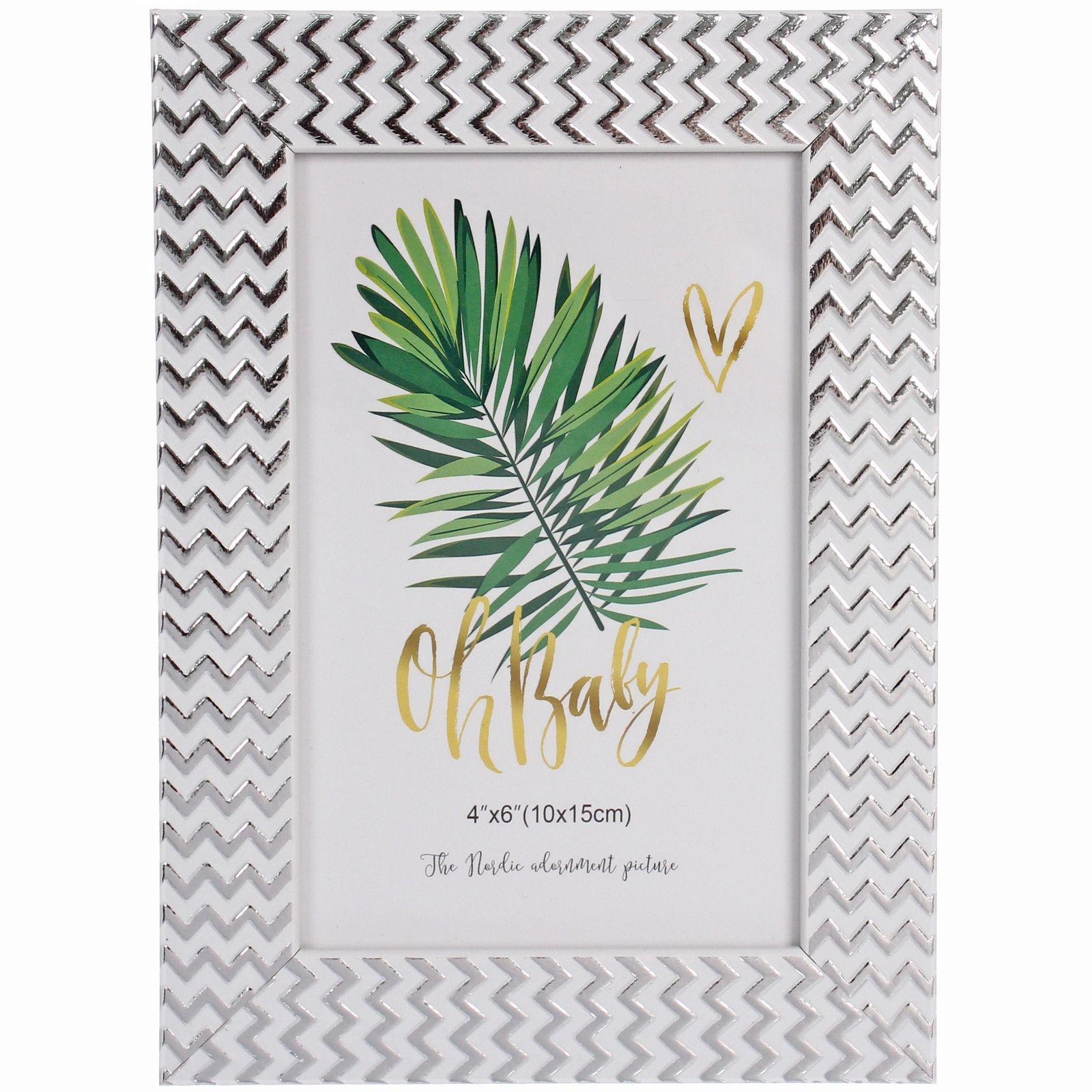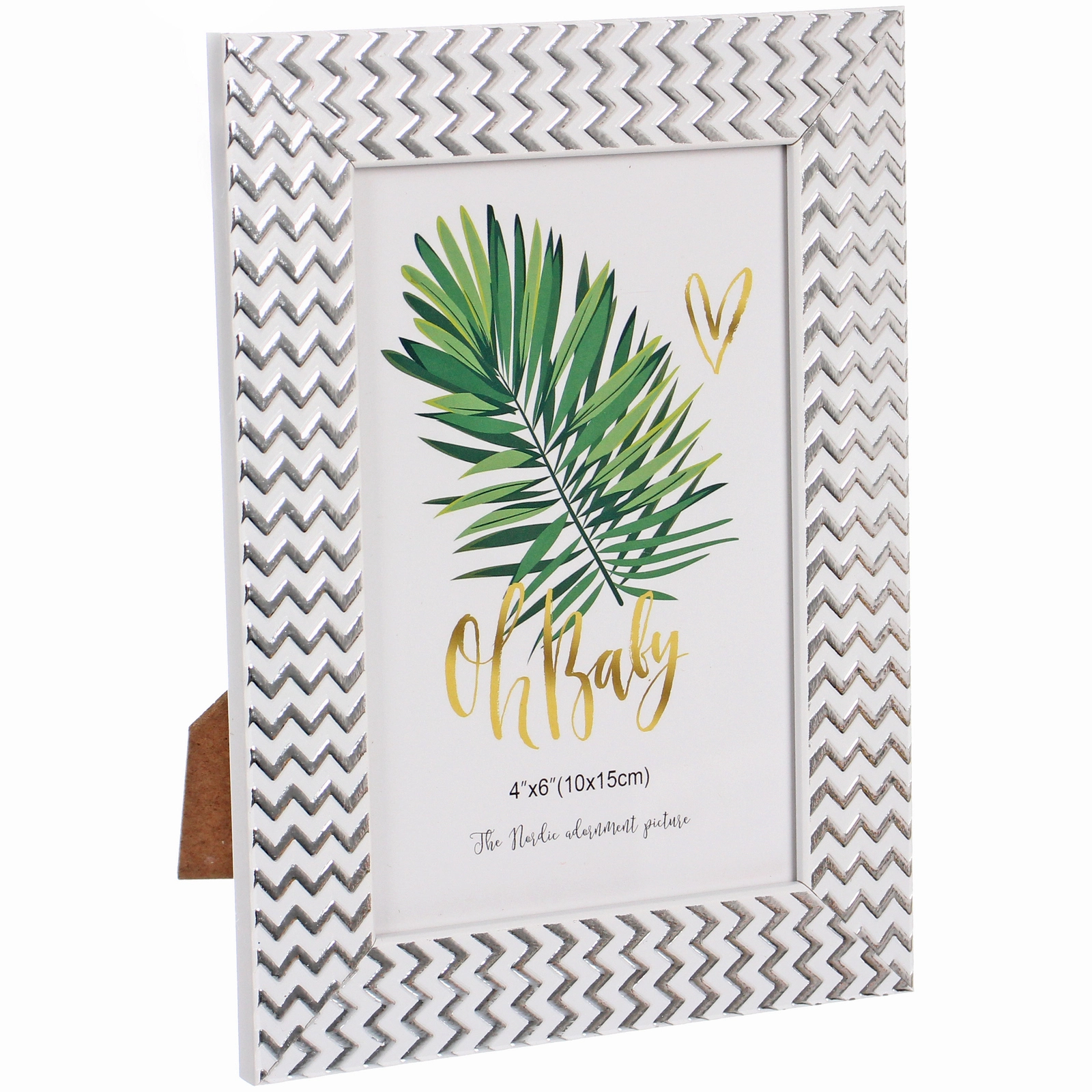 - Стильный дизайн: Рельефный зигзагообразный узор серебристого оттенка создаёт эффектную игру света и тени, делая рамку заметным декоративным элементом даже без фотографии.