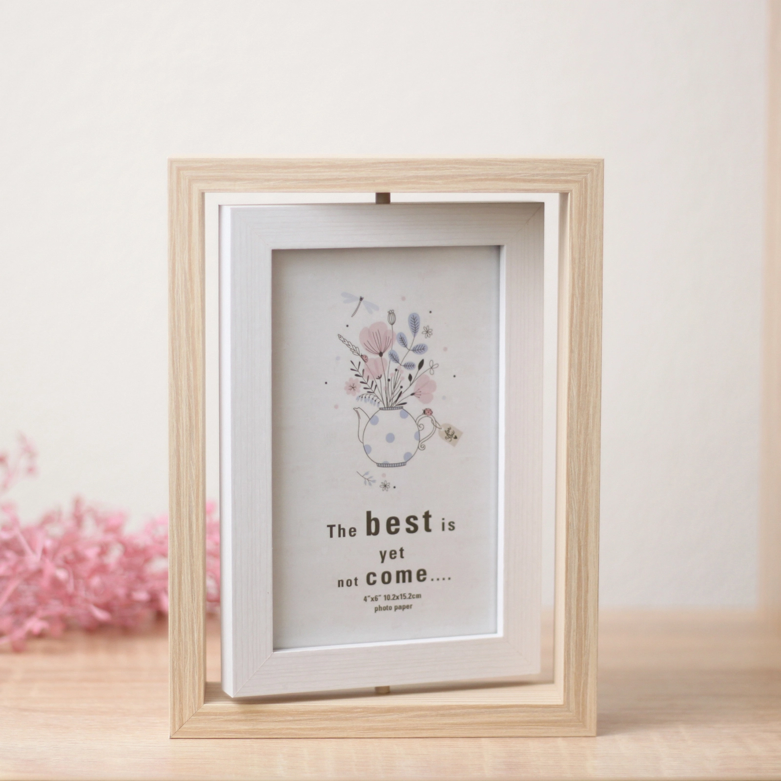 Фоторамка настольная вращающаяся 10х15 см, цвет бежевый, с двойной рамкой, для фото 4х6 дюймов