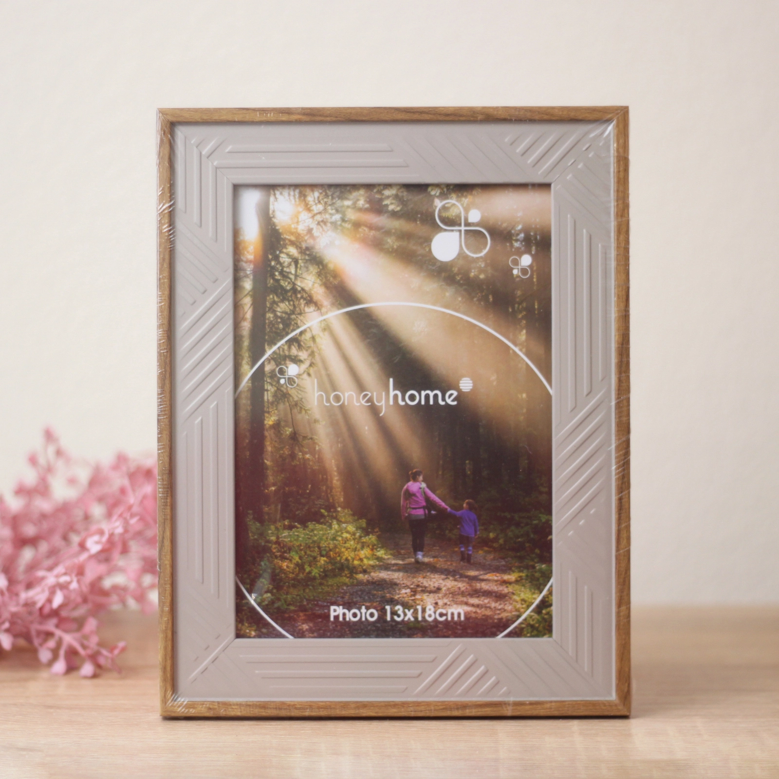 - Универсальное оформление: нейтральная цветовая гамма и лаконичный декор в виде надписи «honeyhome» делают рамку уместной в любом стиле интерьера — от классики до современного минимализма.