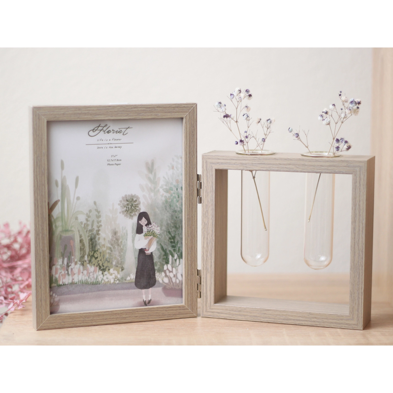 Эта необычная фоторамка станет стильным акцентом в вашем интерьере, объединив в себе место для любимой фотографии и элегантные мини-вазы для сухоцветов. Идеальное решение для тех, кто ценит оригинальные детали и хочет добавить в дом нотку природной гармонии и тепла.