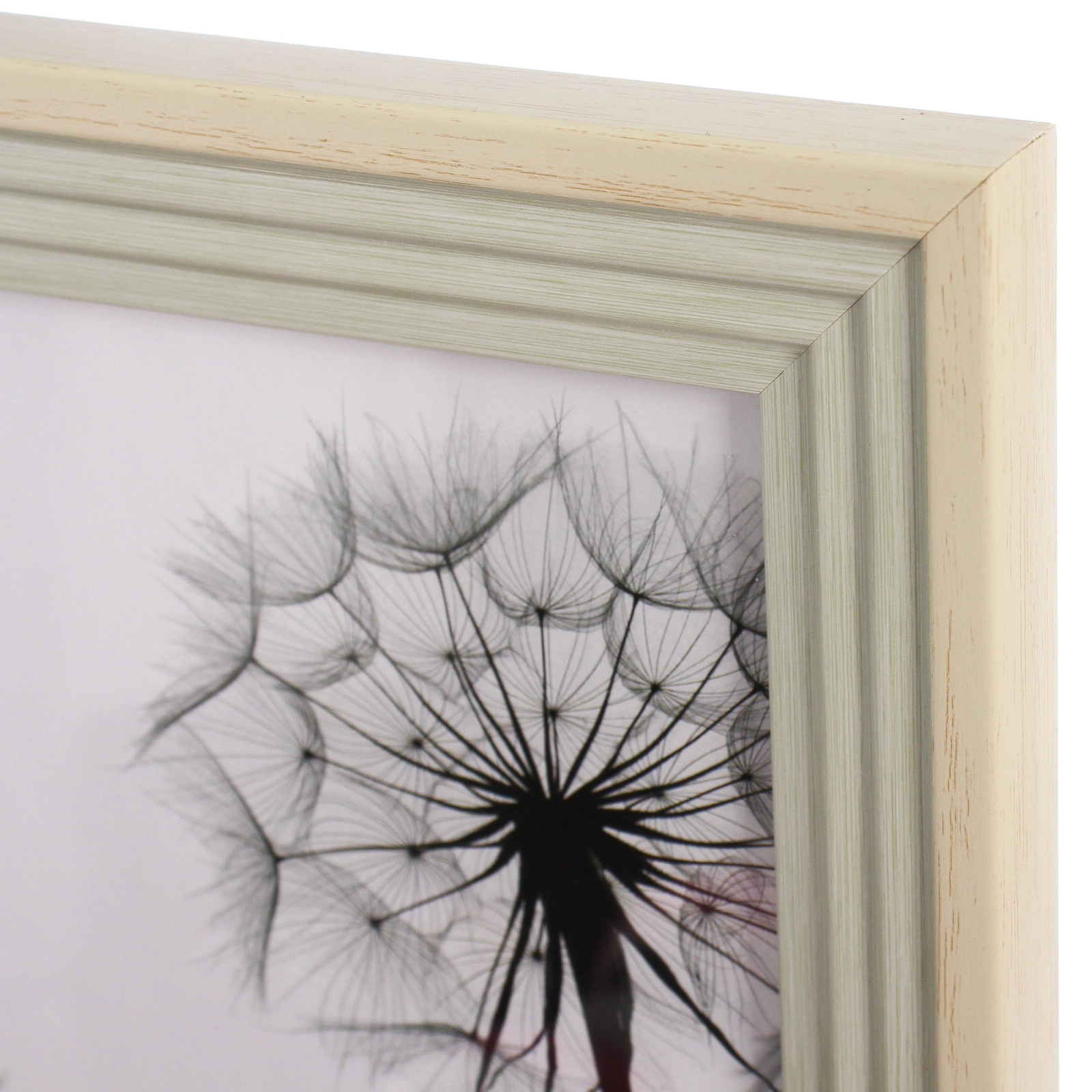 Многослойный ступенчатый профиль рамки создаёт интересный объём и глубину, делая акцент именно на фотографии. Сочетание нежного бежевого внешнего контура и внутренней грани в оттенке «зелёная дымка» добавляет изделию лёгкости и современности.
