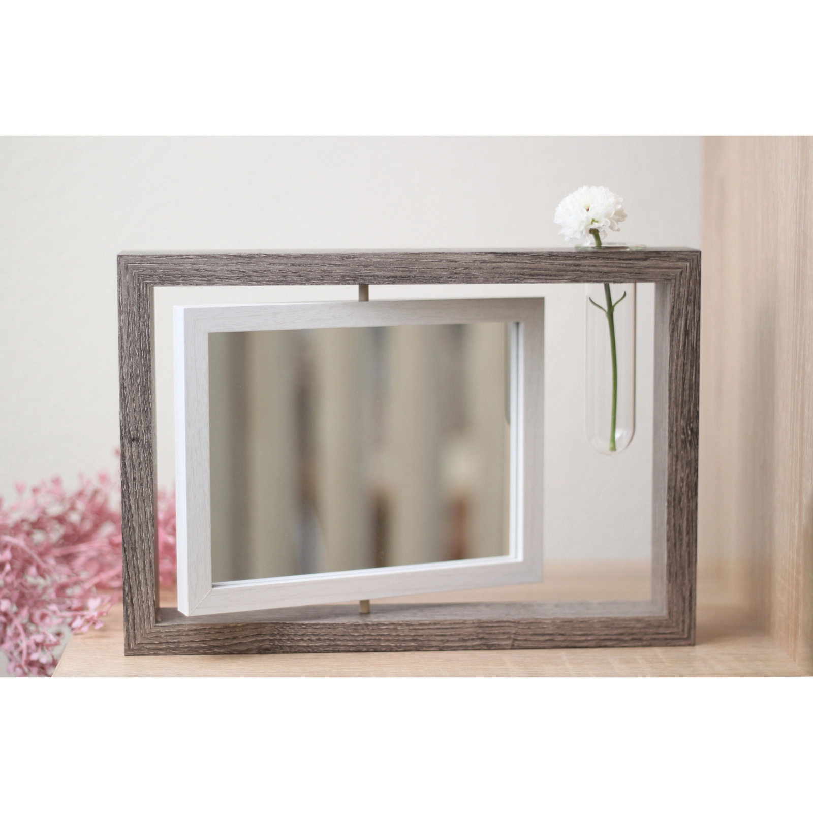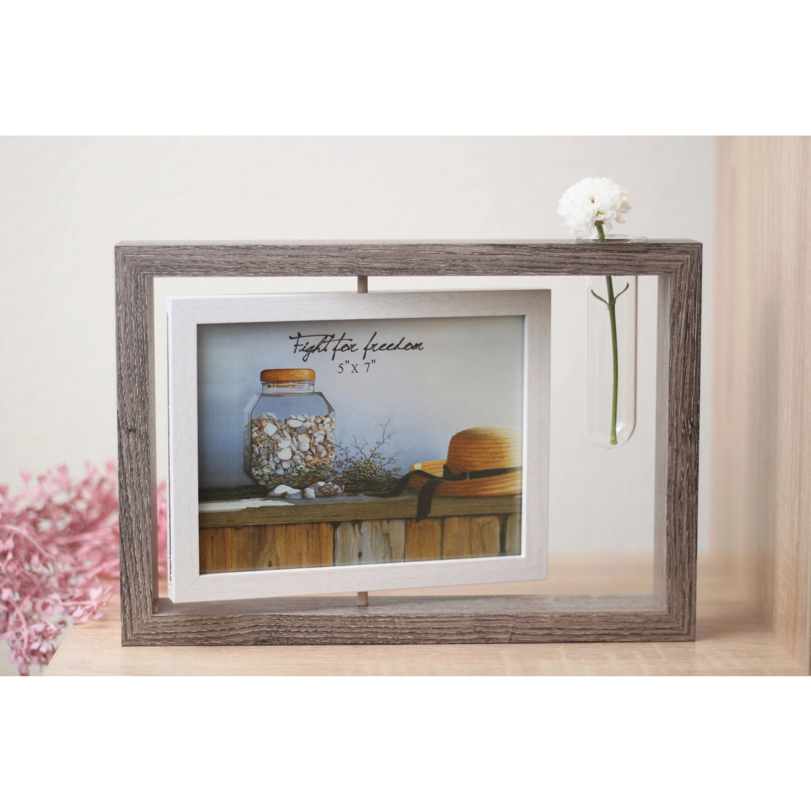 - Вращающаяся внутренняя вставка: позволяет легко менять фотографии, не снимая рамку с полки. Просто поверните внутреннюю белую рамку, чтобы вставить новый снимок.