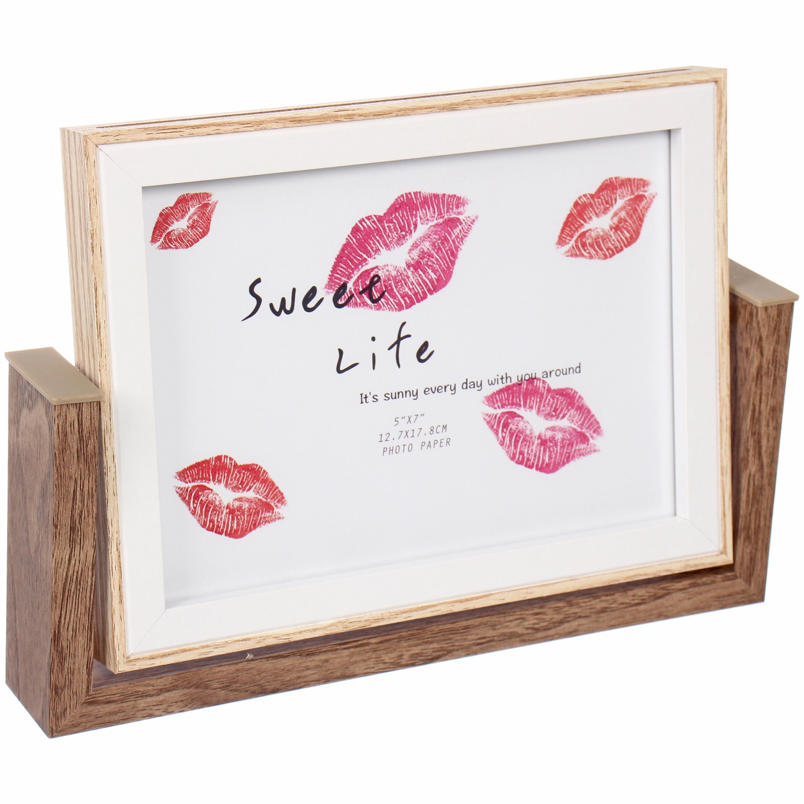 - Устойчивая подставка — П-образная конструкция надёжно удерживает рамку на горизонтальной поверхности.