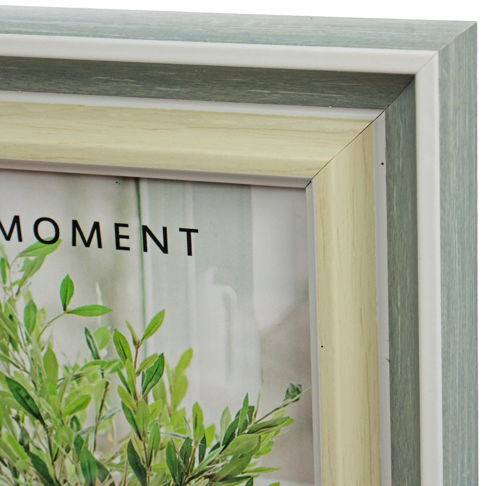 - Многослойная конструкция: сочетание внешнего контура в оттенке «синяя дымка» с текстурой под дерево, светлой внутренней окантовки и тонкой белой полосы создает эффект глубины и изысканности.