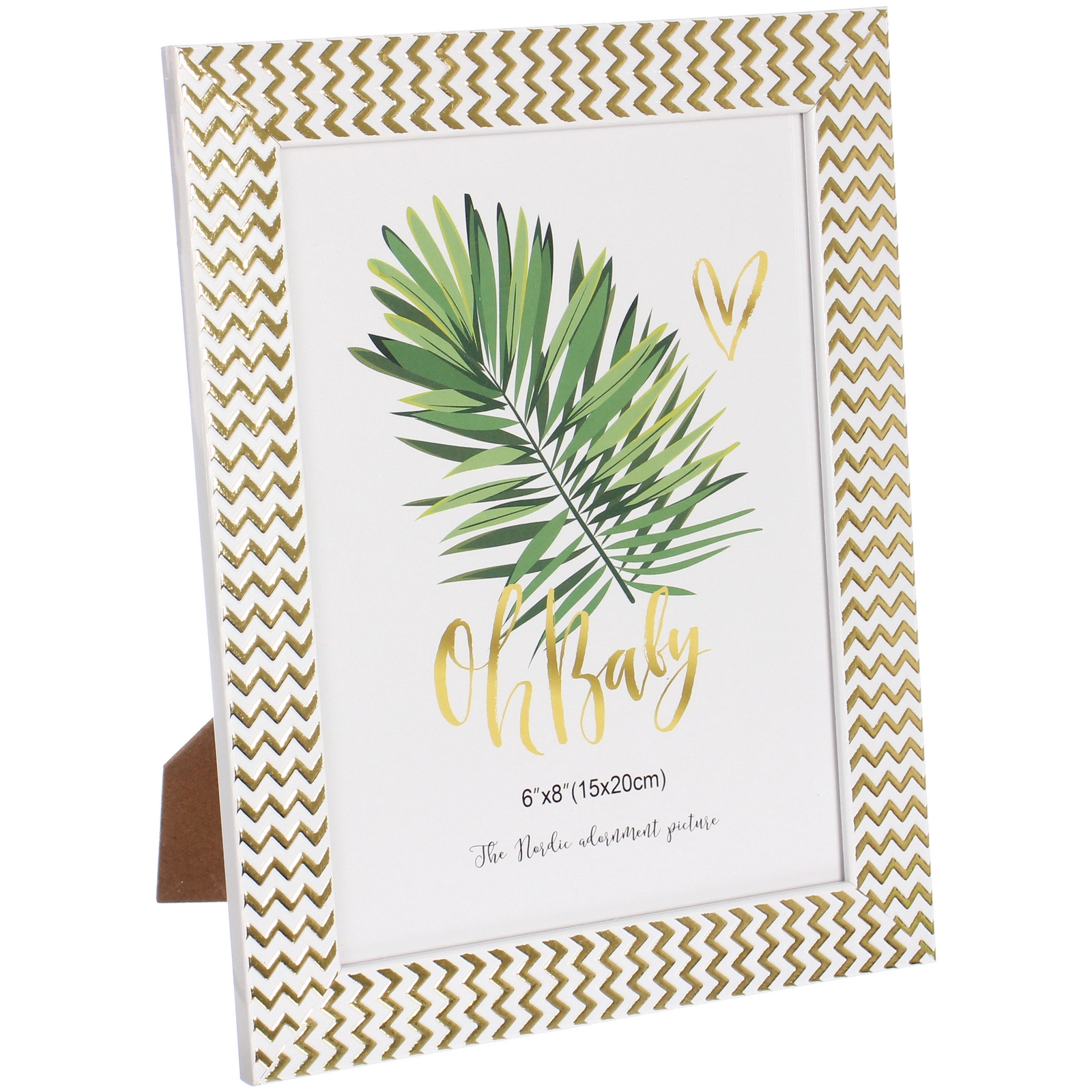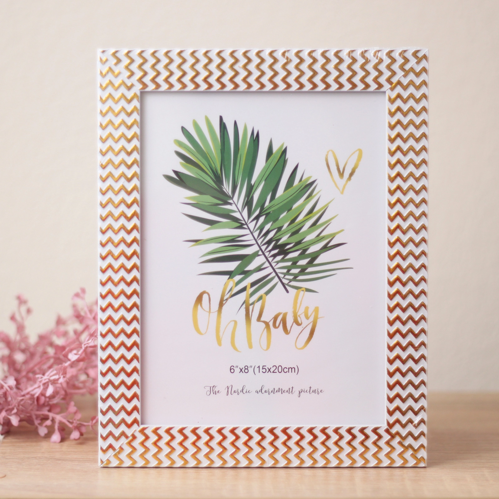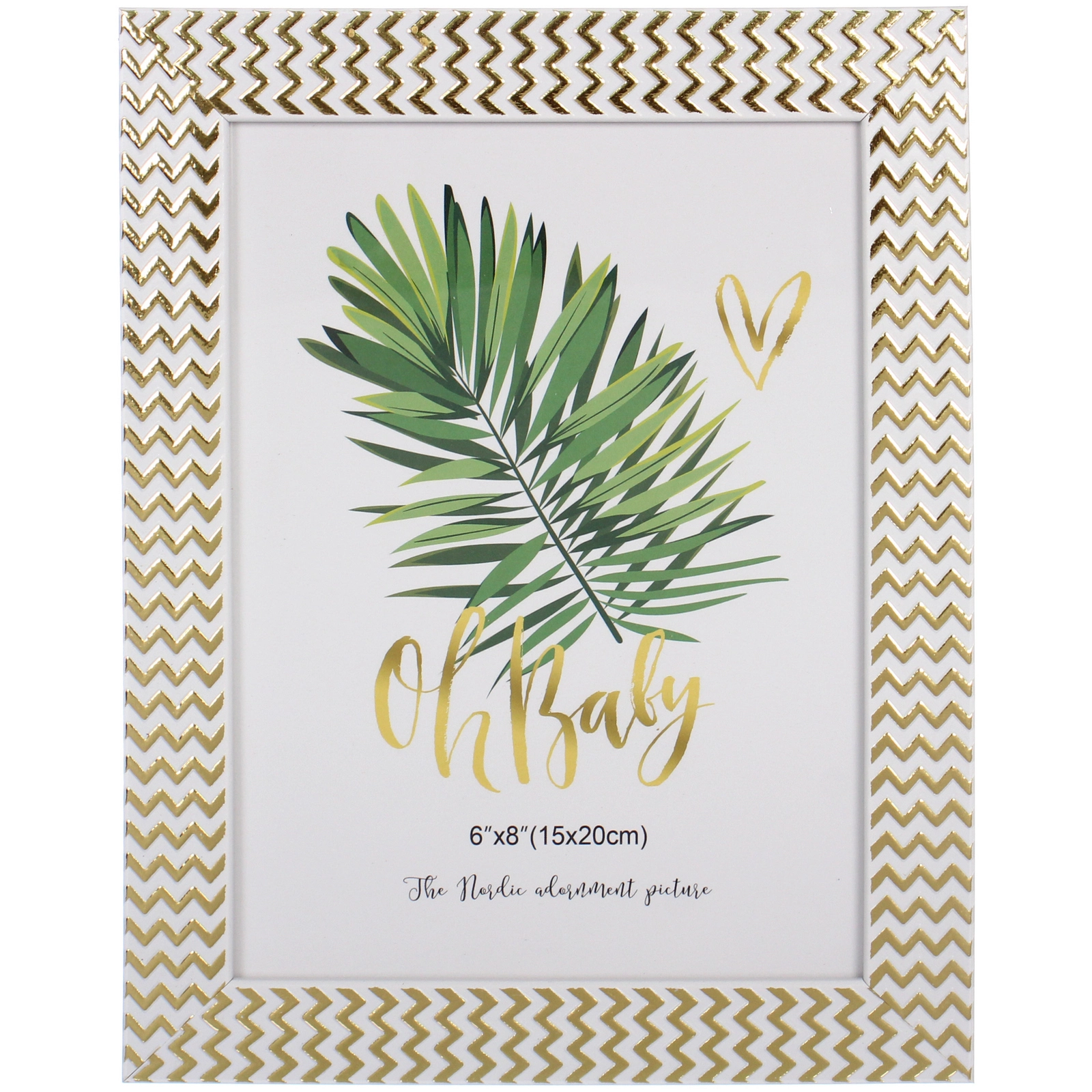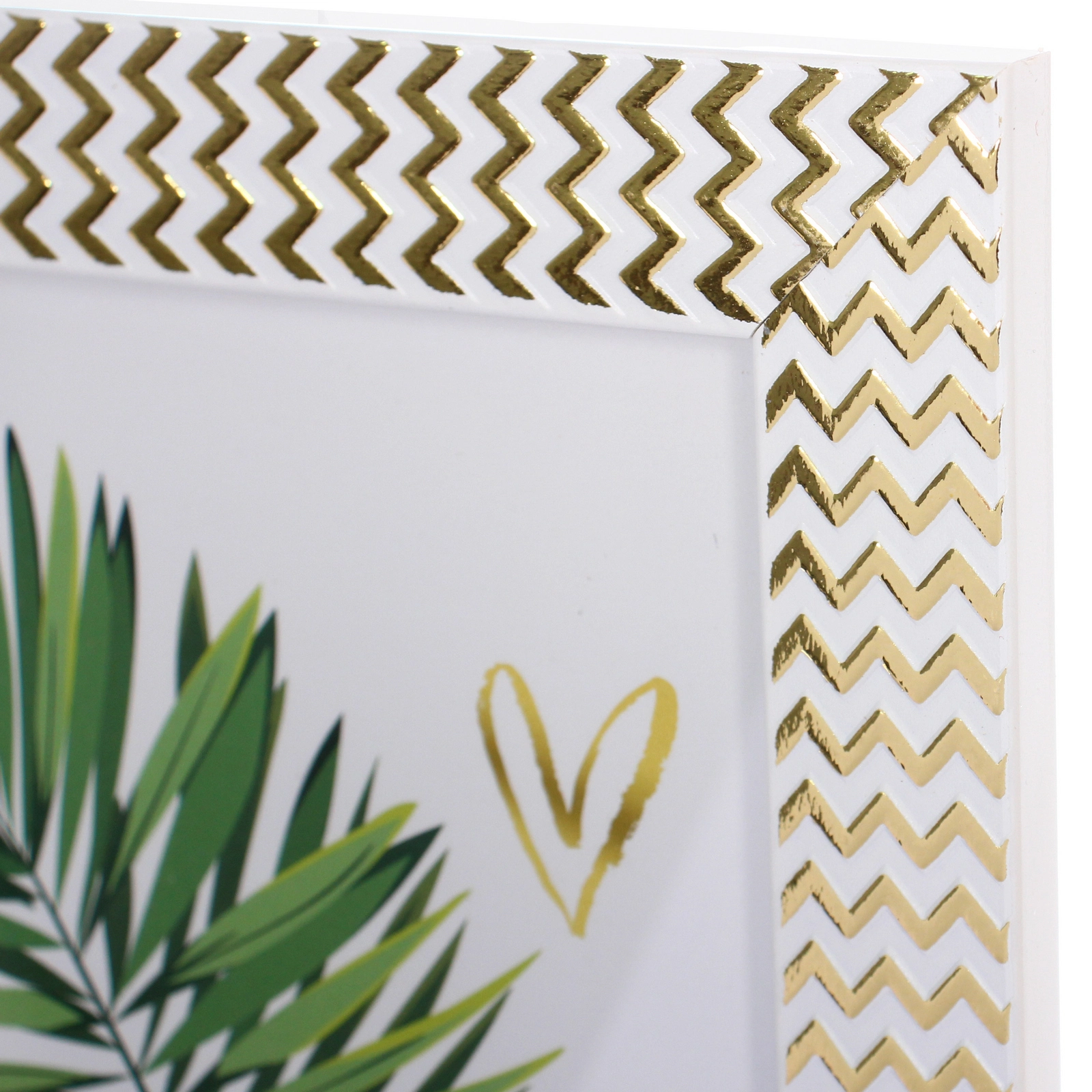 - Элегантный узор: по периметру рамки нанесён стильный зигзагообразный орнамент золотистого цвета, который добавляет изделию визуальный объём и современное звучание.