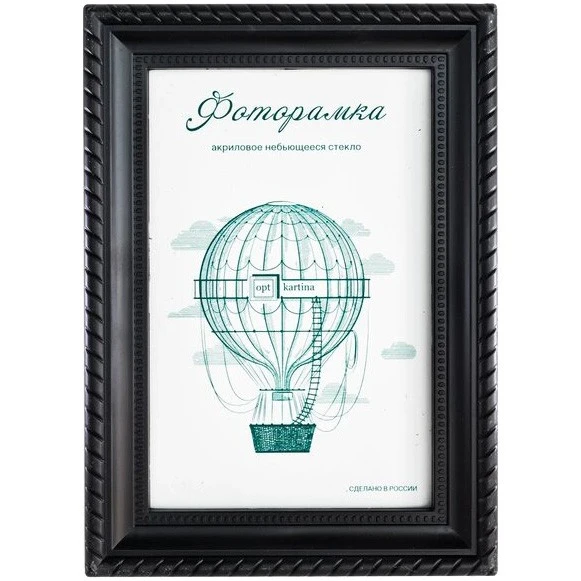 Рамка изготовлена из качественного пластика, что обеспечивает её лёгкость и долговечность. Вместо хрупкого стекла используется прозрачное акриловое покрытие — оно не бьётся, что делает фоторамку безопасной для детской комнаты и удобной для транспортировки. Классический чёрный цвет и рельефный узор по периметру в виде диагональных линий придают изделию сдержанный и стильный вид, который гармонично впишется в большинство современных интерьеров.