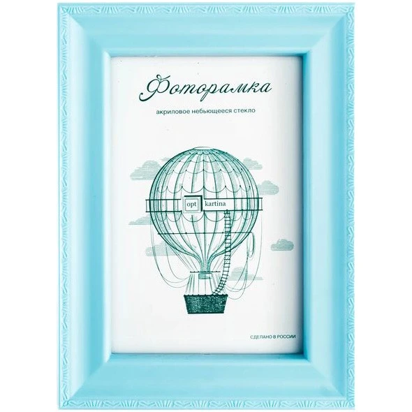 Широкий багет голубого цвета с рельефным орнаментом по периметру придаёт рамке изысканный и завершённый вид. Голубой оттенок создаёт спокойное и гармоничное настроение, идеально подходя для фотографий с природными пейзажами, семейных портретов или детских снимков.