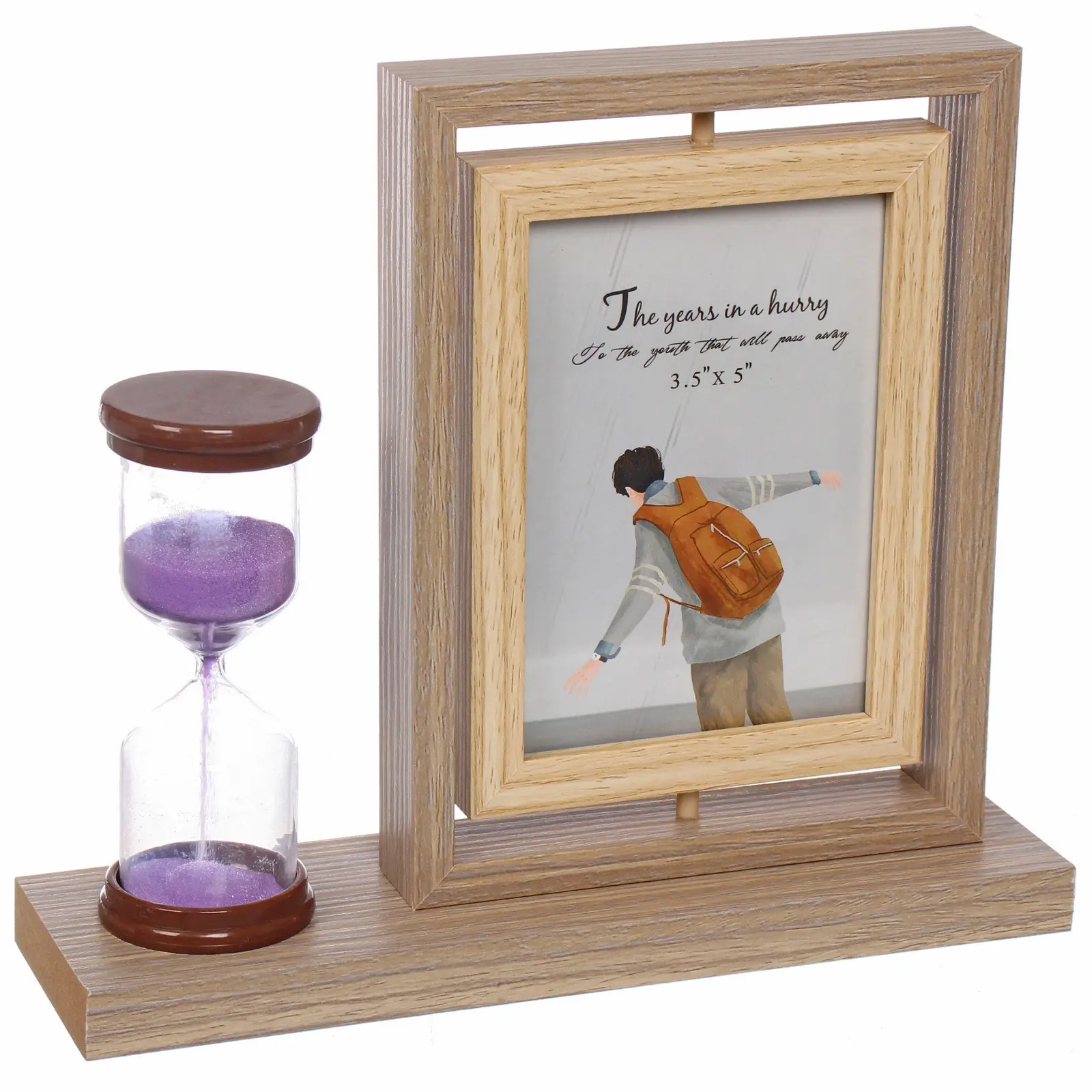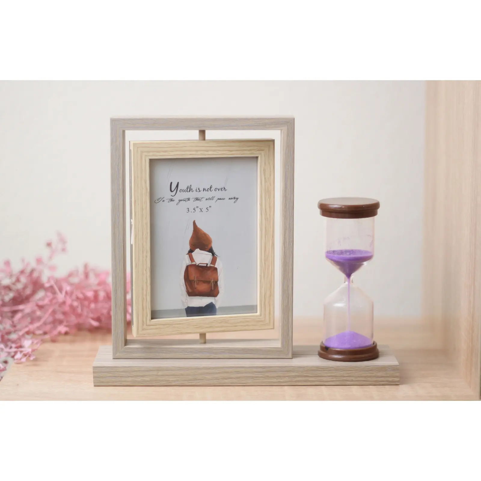 Эта фоторамка станет идеальным дополнением вашего интерьера, добавляя уют и стиль в любое пространство. Сочетание коричневого цвета и натурального материала придаст вашему дому особую атмосферу. Песочные часы, встроенные в конструкцию, не только украшают, но и выполняют практическую функцию отсчета времени, что делает этот предмет не только декоративным, но и функциональным.