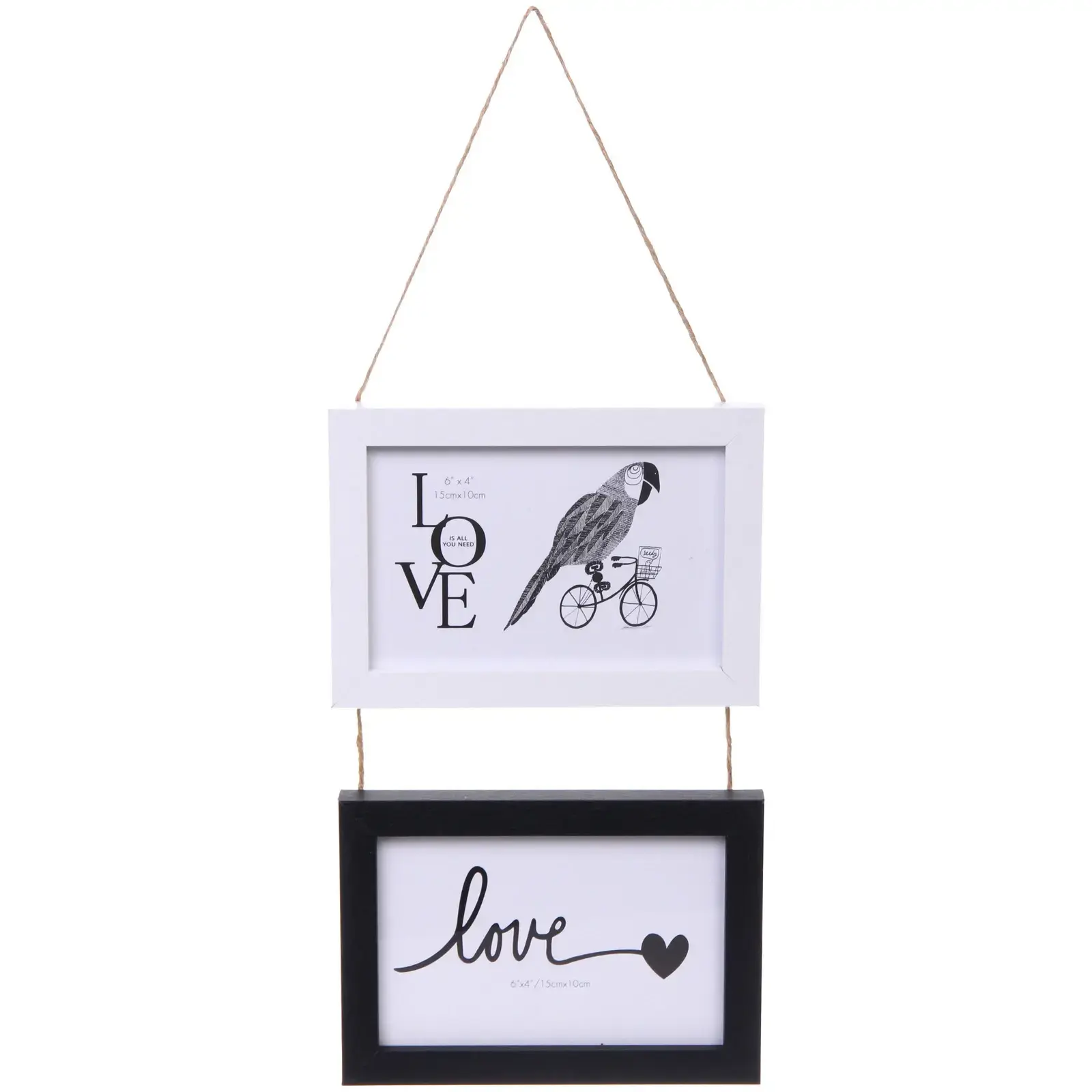 Фоторамка предназначена для размещения двух фотографий размером 10x15 см. Она отлично подходит для оформления семейных снимков, романтических моментов или ярких воспоминаний с друзьями. Рамка легко подвешивается на стену с помощью веревки, что позволяет создать уникальную композицию в вашем пространстве.