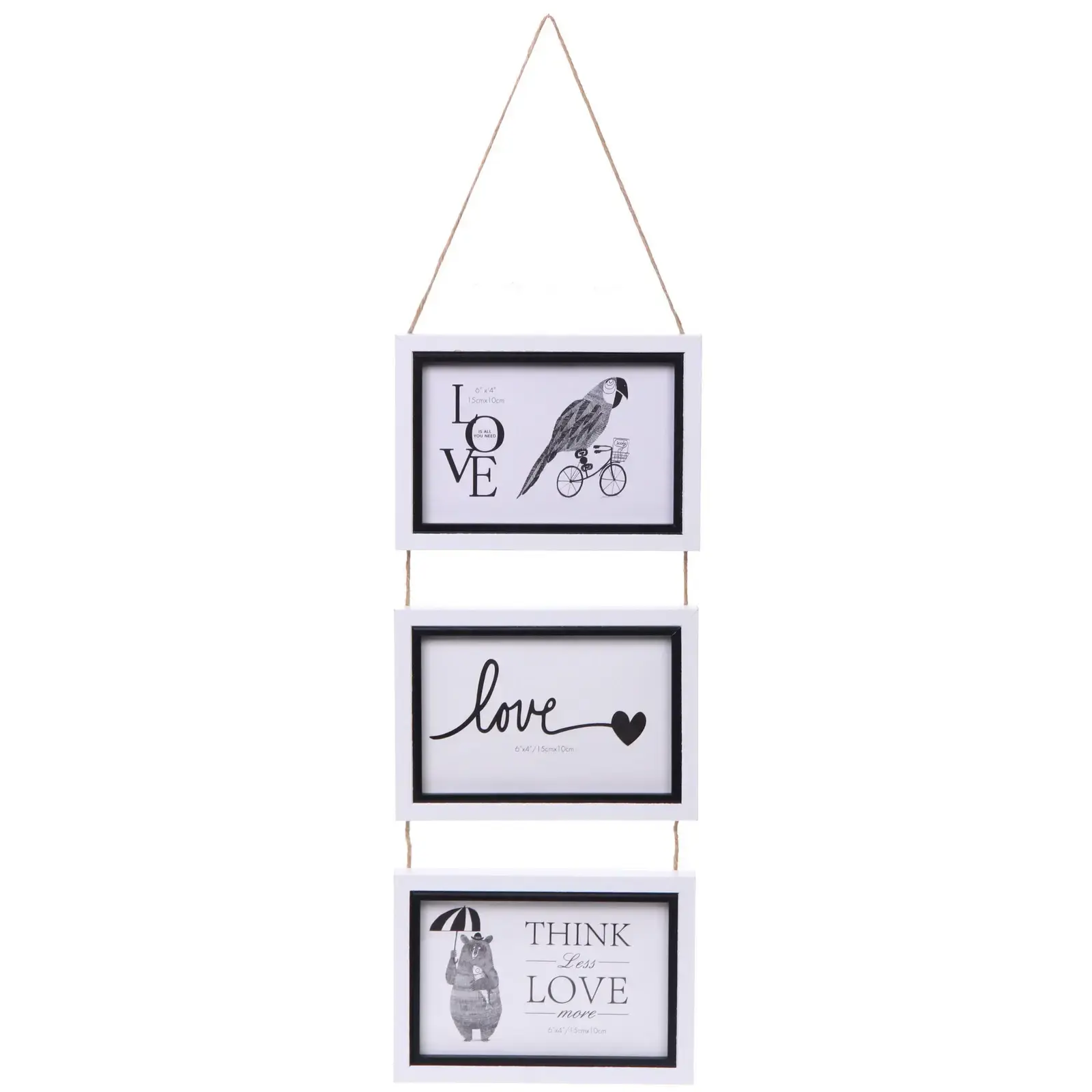 Фоторамка выполнена из МДФ и пластика, что делает ее легкой и прочной. Белый цвет с черной окантовкой придает ей элегантный вид, а возможность размещения на стене позволяет сэкономить место на столе или полке. Размеры рамок идеально подходят для стандартных фотографий, что делает их универсальными для использования.