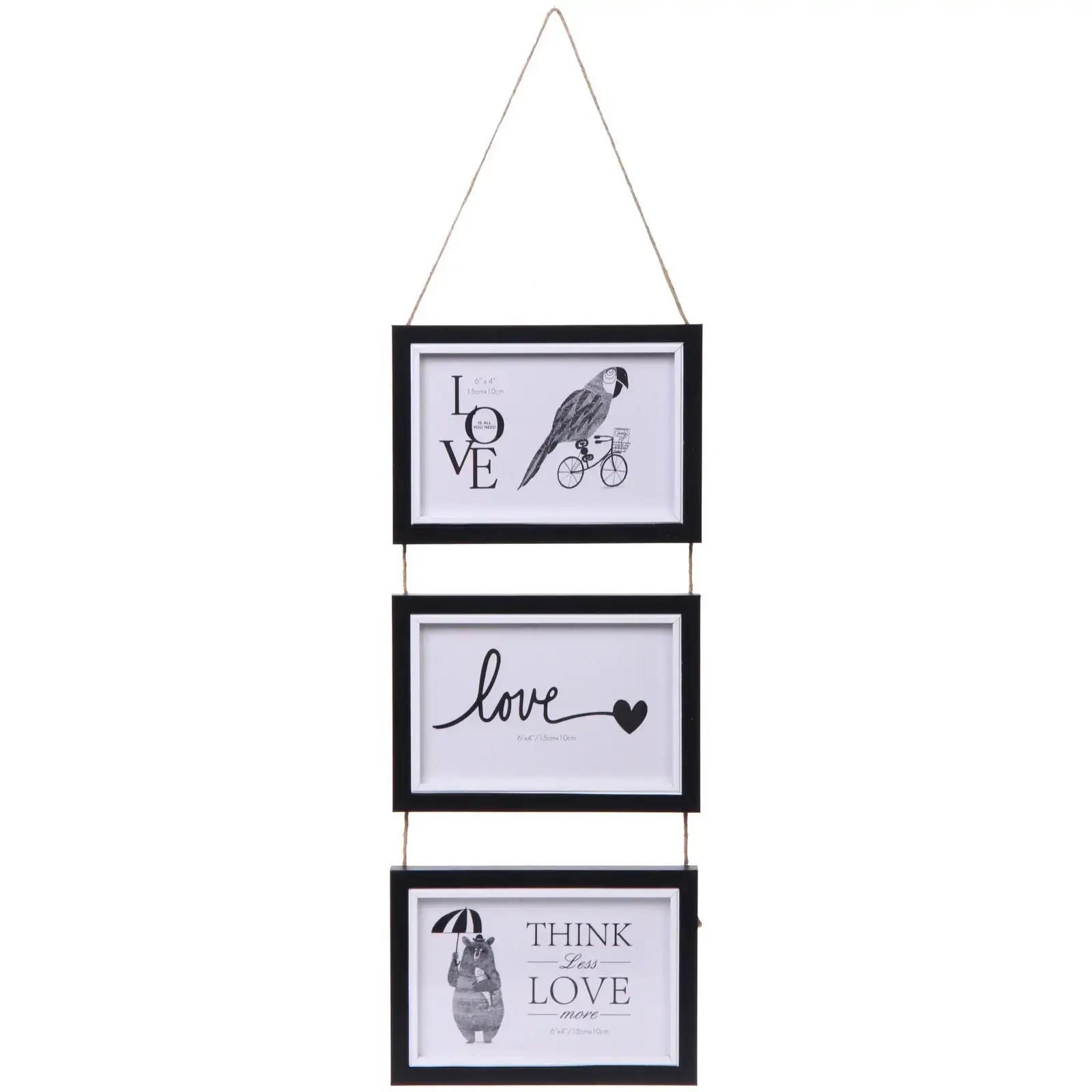 Создайте уют и стиль в вашем доме с помощью фоторамки «Maria», которая идеально подходит для размещения трех фотографий размером 10х15 см. Эта рамка не только сохраняет ваши воспоминания, но и становится ярким акцентом в интерьере. Черный цвет и белые вставки придают ей современный вид, а возможность подвешивания на веревке добавляет оригинальности.