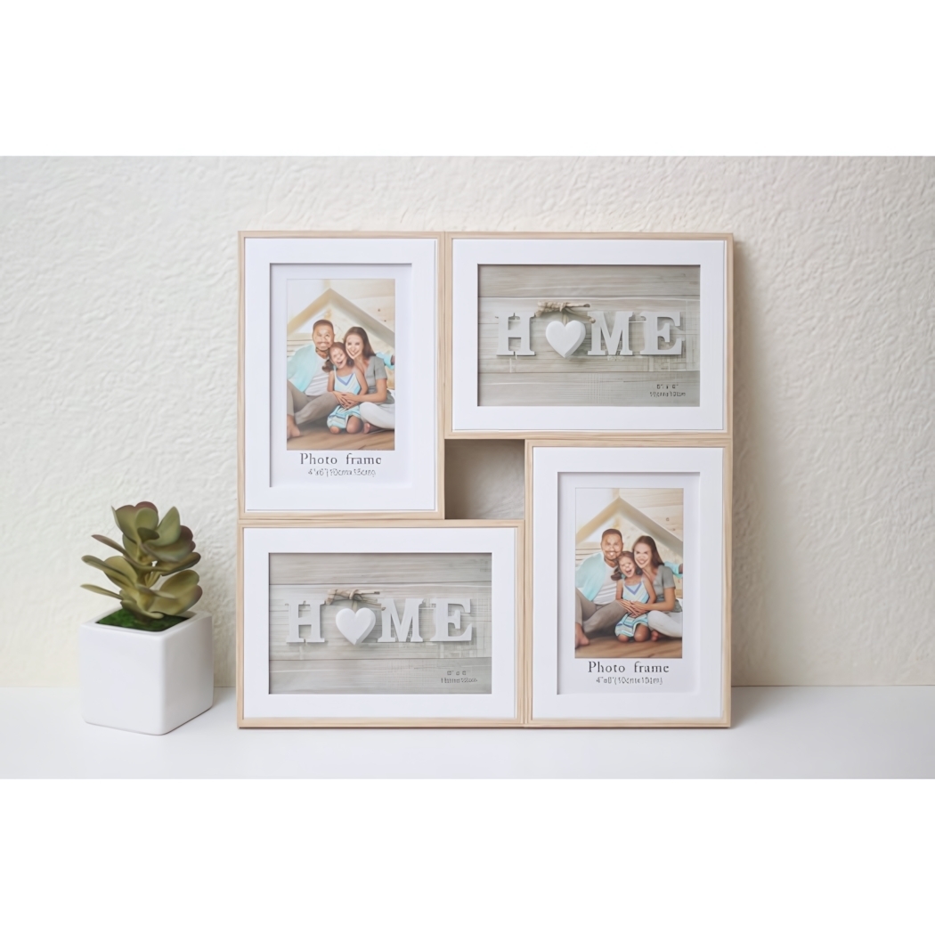 Эта фоторамка идеально подходит для размещения семейных фотографий, снимков с путешествий или памятных моментов. Она станет отличным подарком для близких и друзей, а также украсит ваш офис или гостиную. Рамка имеет 4 секции, что позволяет разместить сразу несколько изображений, создавая гармоничное оформление.
