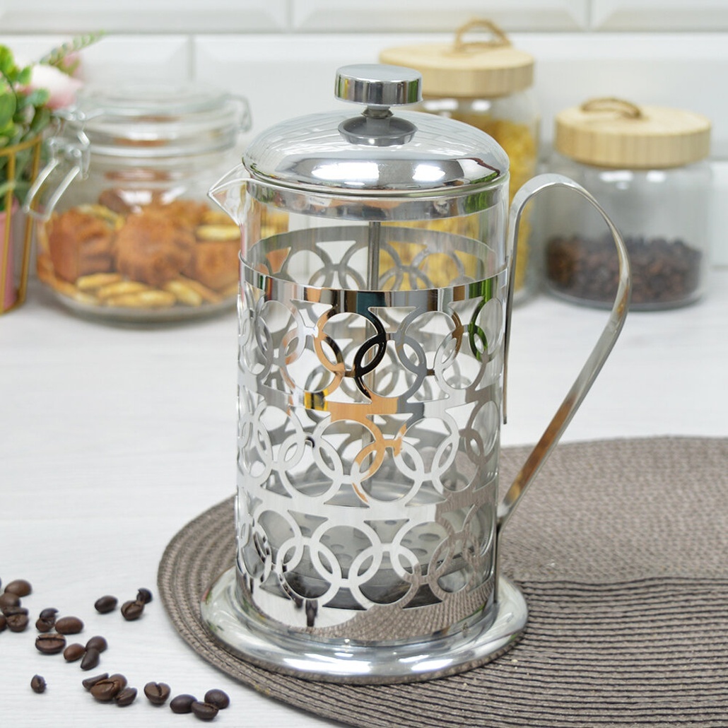 Френч-пресс OLIMPIA T046, 800 мл, нержавеющая сталь и жаропрочное стекло, прочный фильтр