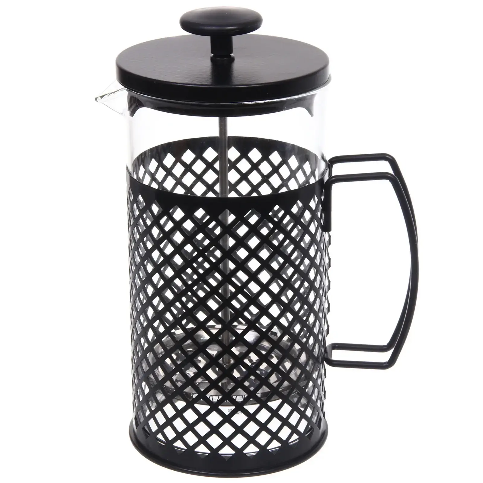 Френч-пресс имеет цилиндрическую форму и черную металлическую сетку с решетчатым узором, что делает его не только функциональным, но и эстетически привлекательным. Размеры френч-пресса идеально подходят для стандартных порций кофе и чая. Благодаря прозрачному стеклу вы всегда сможете контролировать процесс заваривания и регулировать крепость напитка по своему вкусу.