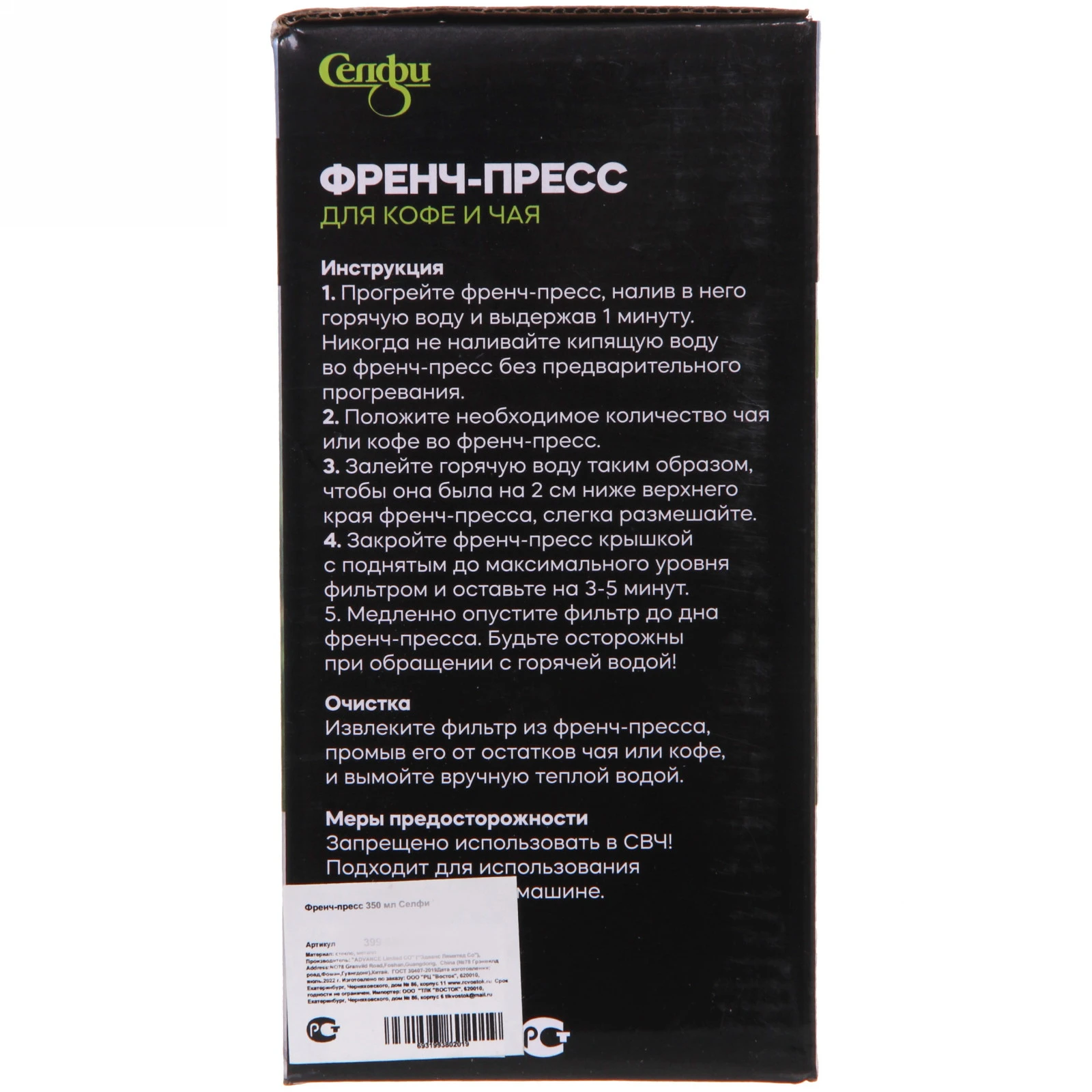 Френч-пресс Селфи «Клетка» сочетает элегантный дизайн и профессиональное качество приготовления. Наслаждайтесь бархатным вкусом кофе и тонкими нотками чая без примесей — многослойный металлический фильтр задерживает даже мельчайшие частицы.