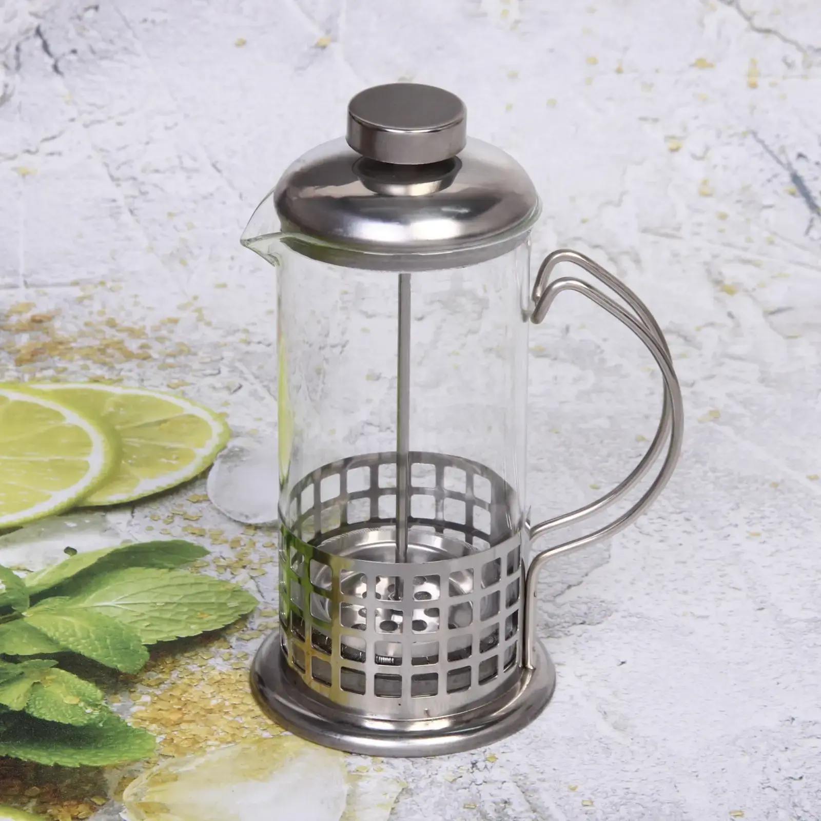 Френч-пресс Селфи «Клетка», 350 мл, стекло и металл, фильтр с ручкой, для насыщенного кофе и чая