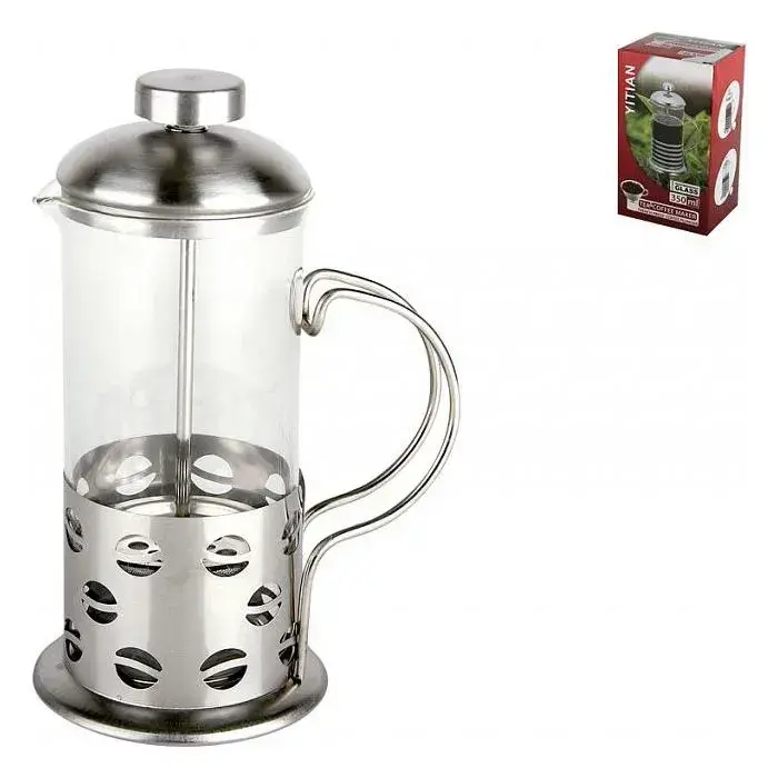 Френч-пресс 350мл, стекло/металл, серебристый/прозрачный, компактный для дома
