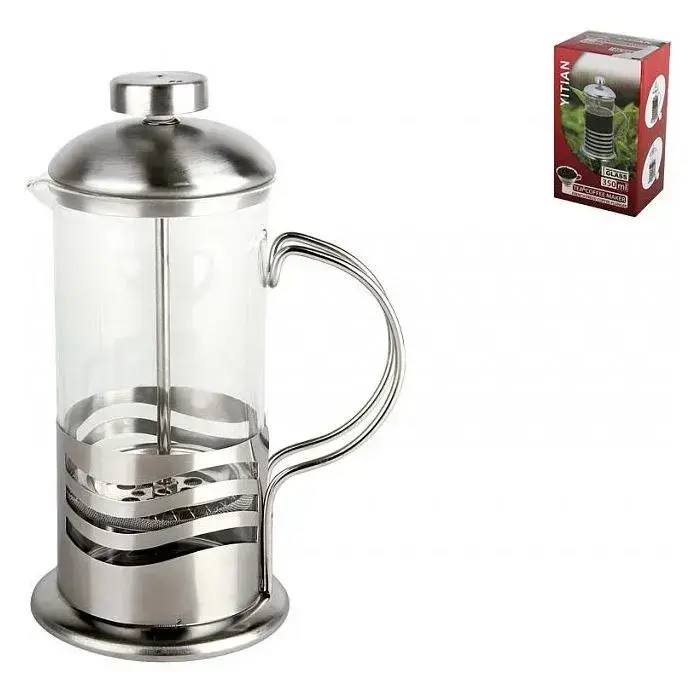 Многослойный фильтр из нержавеющей стали задерживает мельчайшие частицы кофейной гущи. Металлический каркас защищает стеклянную колбу от повреждений, а удобная форма носика предотвращает проливание при наливании.
