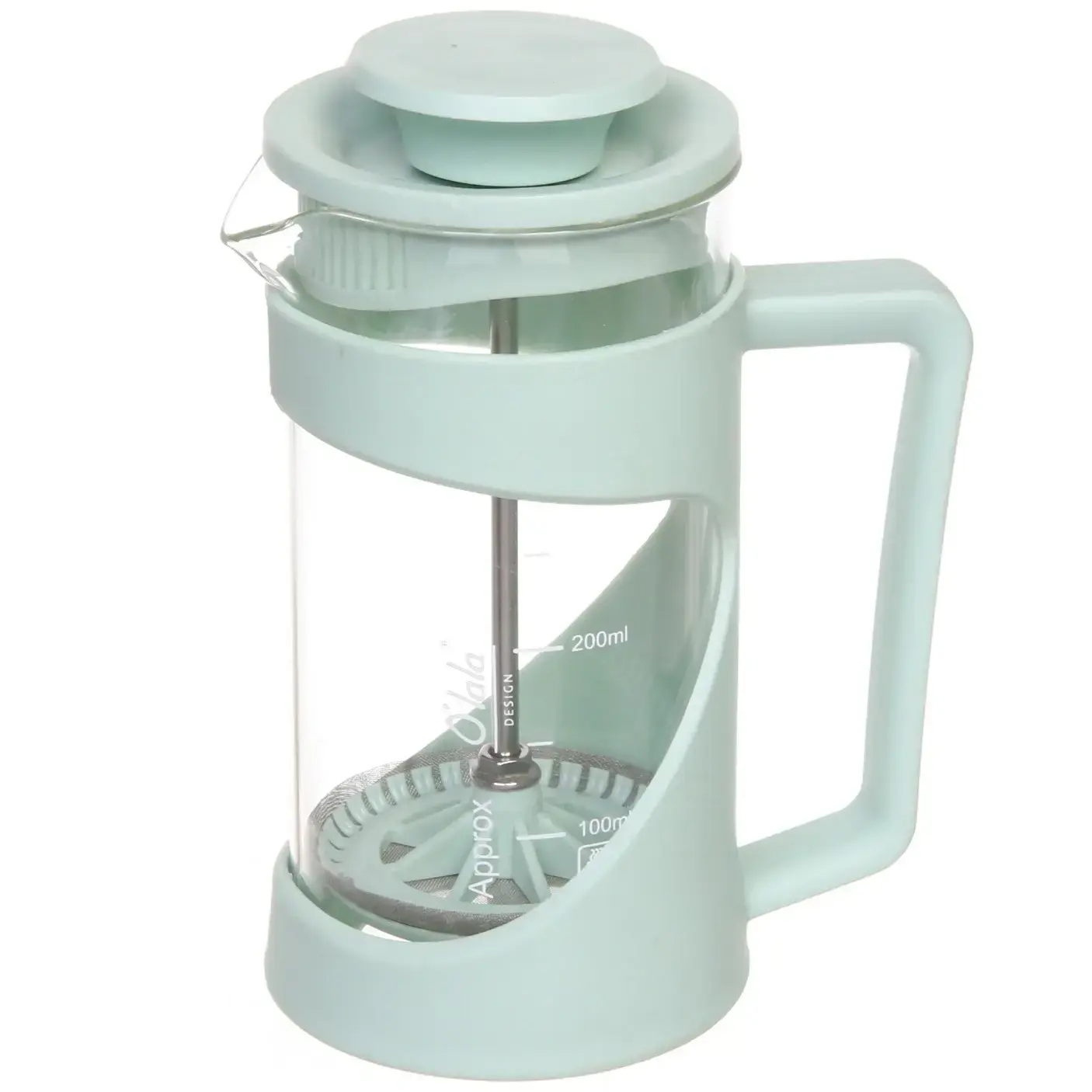 Диаметр основания: 9 см. Высота с поднятым поршнем: 22 см. Вес: 450 г. Подходит для кофе среднего и крупного помола, листового чая, травяных настоев. Рекомендуемая температура: до 100°C.
