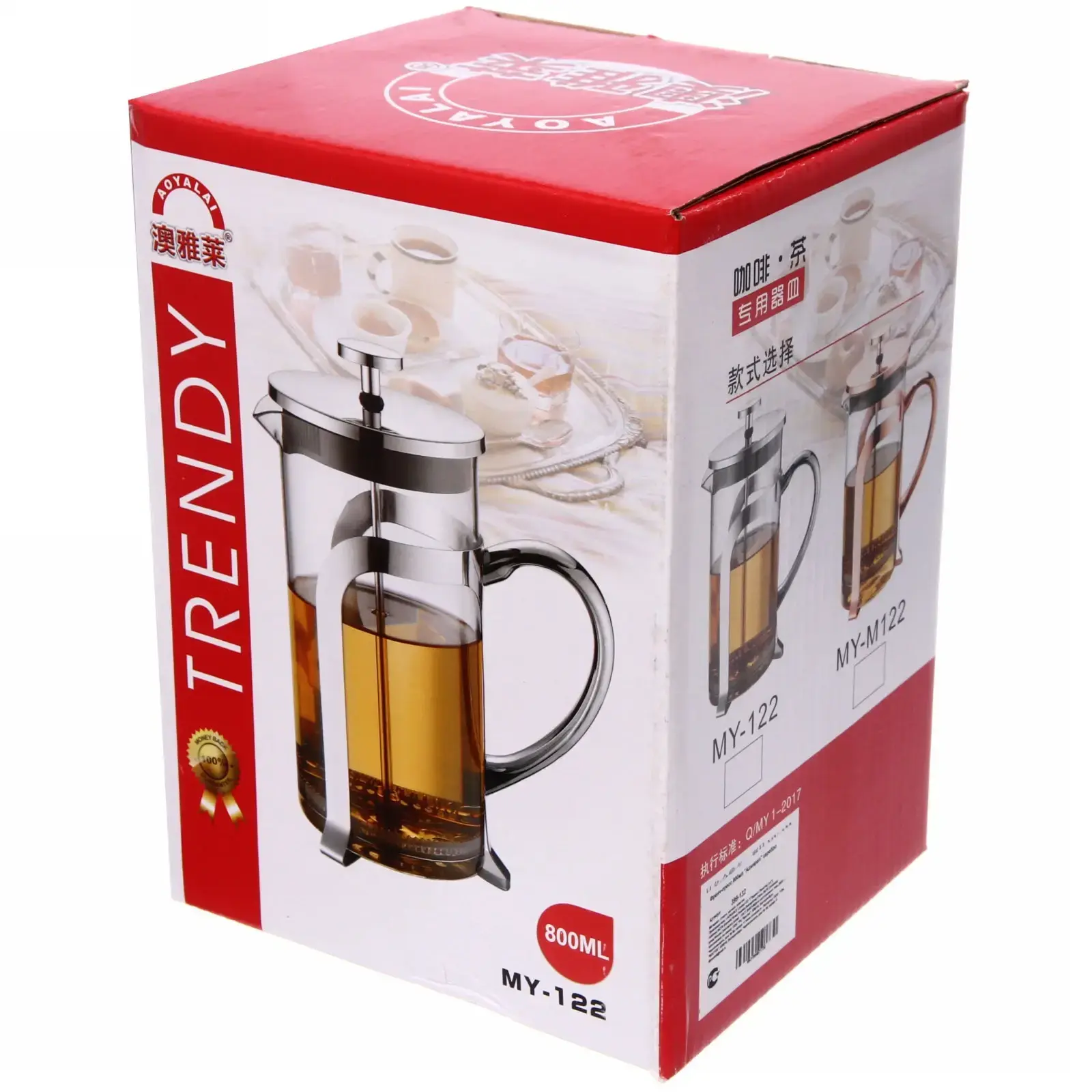 Стеклянный колбой и прецизионным фильтром из нержавеющей стали для насыщенного вкуса без частиц. Объём 800 мл готовит 4 порции ароматного напитка для семьи или гостей.