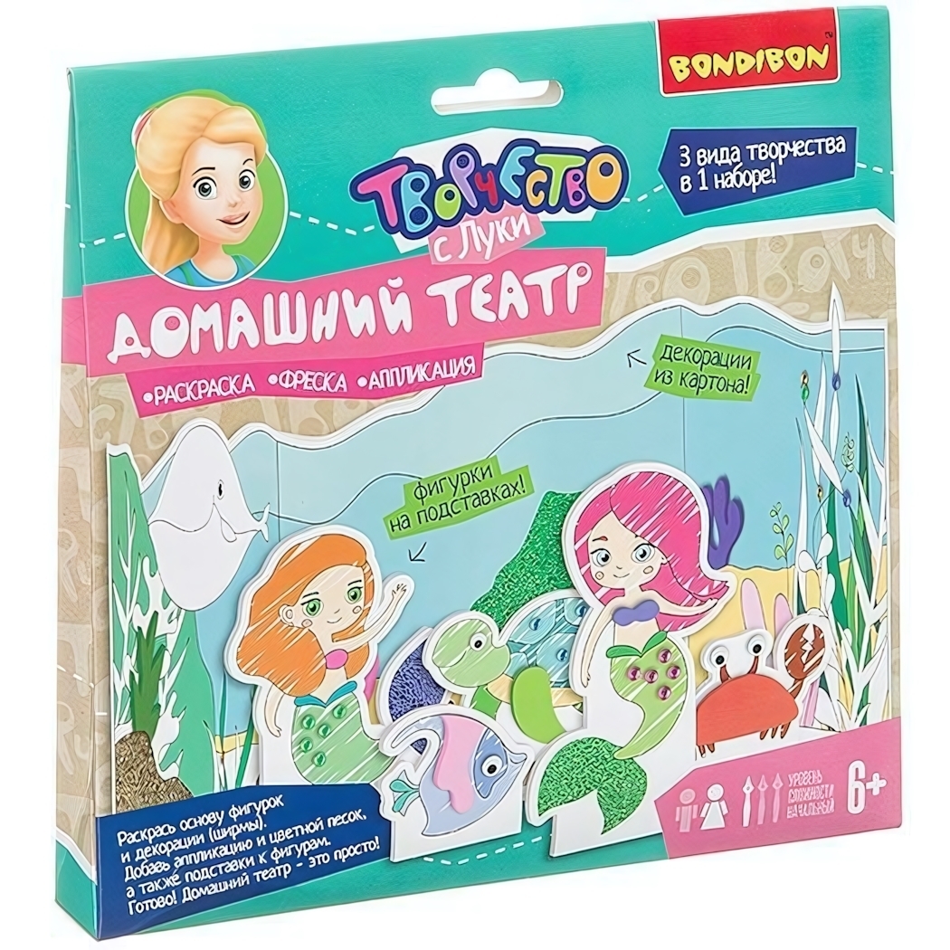 Подарите ребёнку возможность создавать собственные театральные постановки! Этот уникальный комплект объединяет раскрашивание, работу с цветным песком и аппликацию, развивая мелкую моторику и художественный вкус.