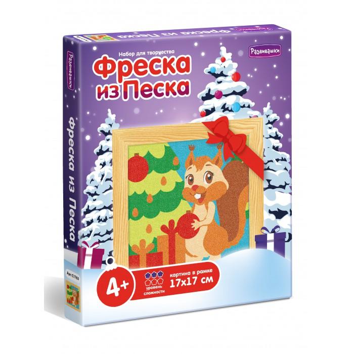 Фреска из песка "Белка у елки", набор для творчества, 17х17см, "Развивашки", новогодняя тематика, для детей от 4 лет