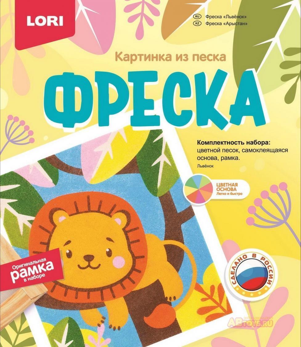 Фреска из песка Lori "Львёнок", набор для творчества, рамка в комплекте, сделано в России