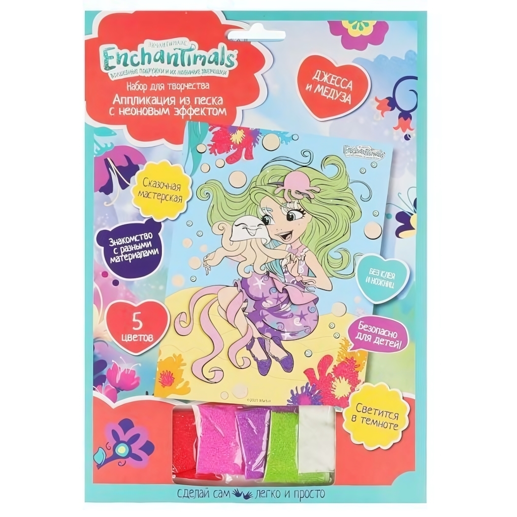 Набор для творчества «Энчантималс»: неоновая фреска из песка, 17х23 см, светится в темноте