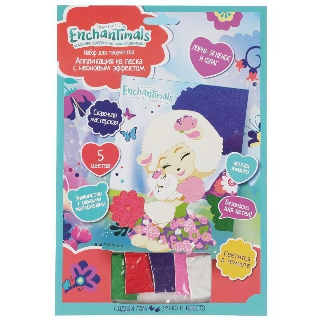Эта неоновая фреска из песка «Энчантималс» создана специально для развития воображения и мелкой моторики у детей. Благодаря яркому дизайну и эффекту светящихся в темноте элементов, ваш ребенок сможет создавать уникальные картины и наслаждаться процессом работы. Подходит для малышей без использования клея и ножниц, что делает её безопасной и удобной для самостоятельного творчества.