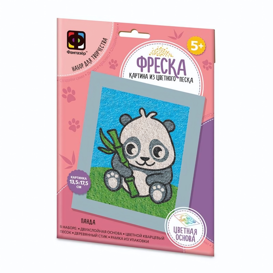 Создайте яркую картину своими руками и подарите ребенку увлекательные минуты творчества. Фреска с очаровательной пандой превращает игру с песком в полноценный художественный процесс, который развивает фантазию и приносит радость от собственного результата. Готовая работа станет украшением комнаты или приятным подарком для близких.