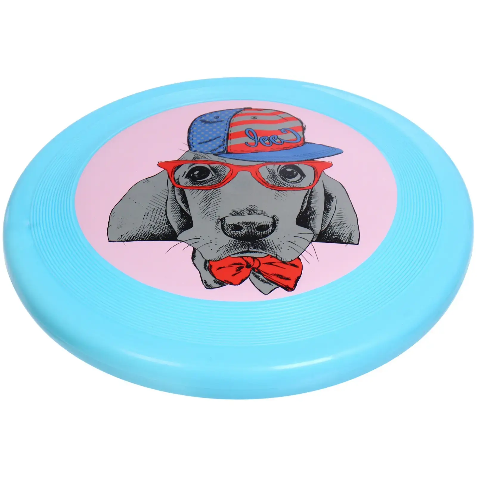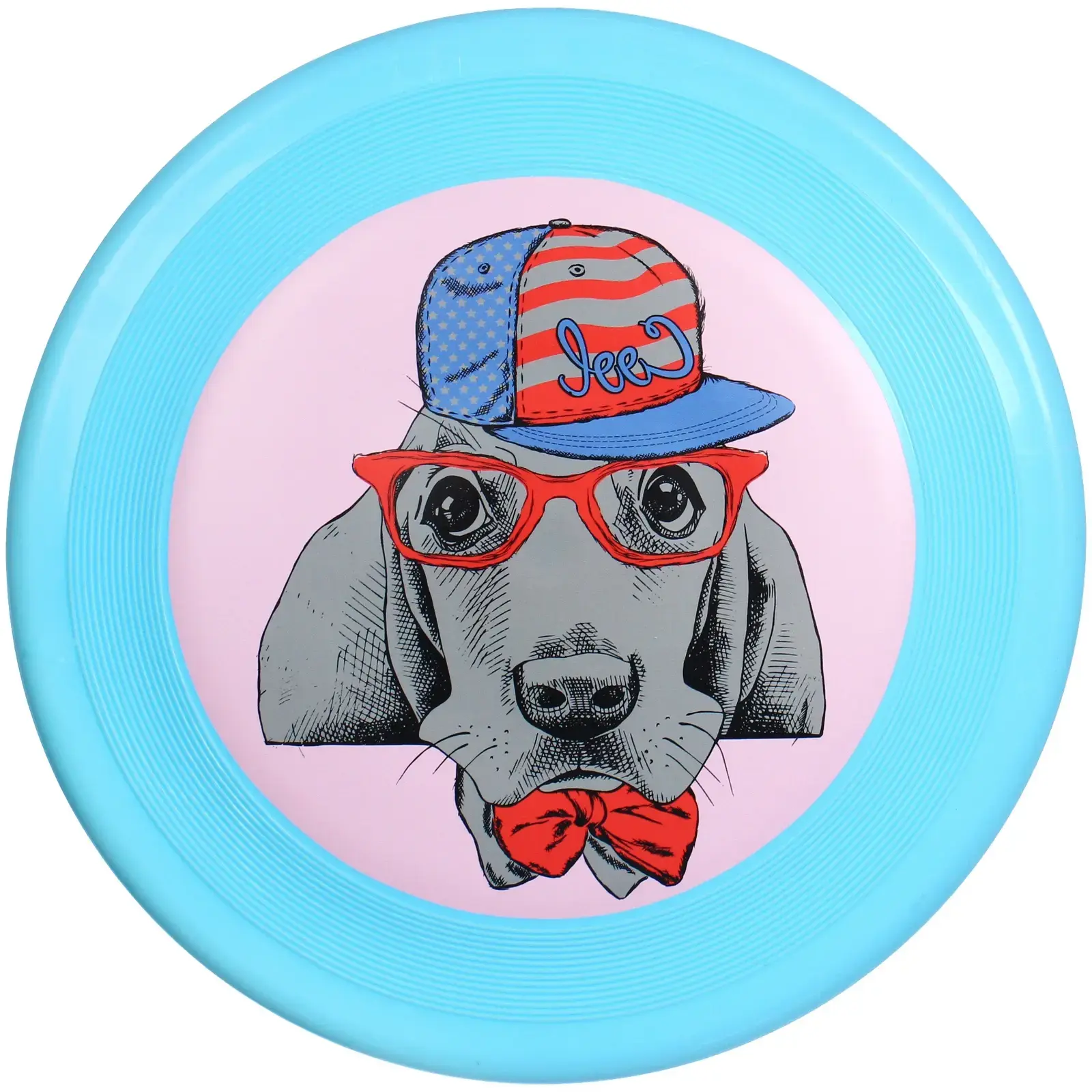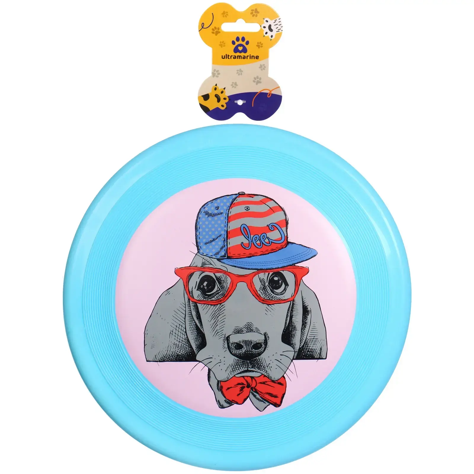 Размер фрисби составляет 23 см в диаметре, что делает его удобным для захвата. Игрушка выполнена из прочного пластика, который не замерзает зимой и не повреждает зубы собаки. Фрисби имеет яркий дизайн с изображением собаки в очках и кепке, что добавляет игривости в ваши игры.