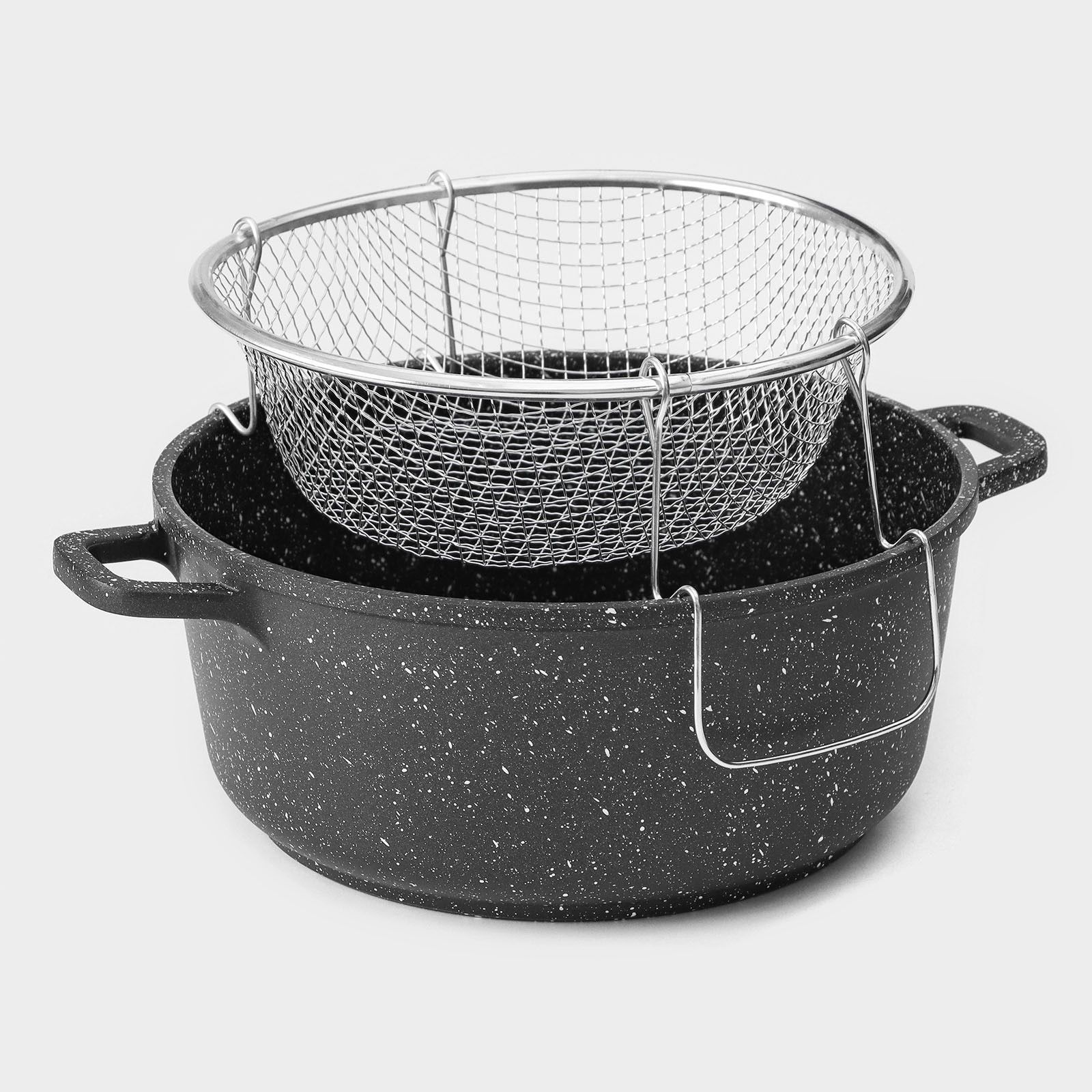 Фритюрница имеет круглую форму и диаметр 20 см, что позволяет готовить порции для небольшой семьи. Она также может выполнять функцию дуршлага, что делает ее универсальным инструментом на вашей кухне. Не упустите возможность сделать ваши блюда более вкусными и разнообразными с фритюрницей Доляна!