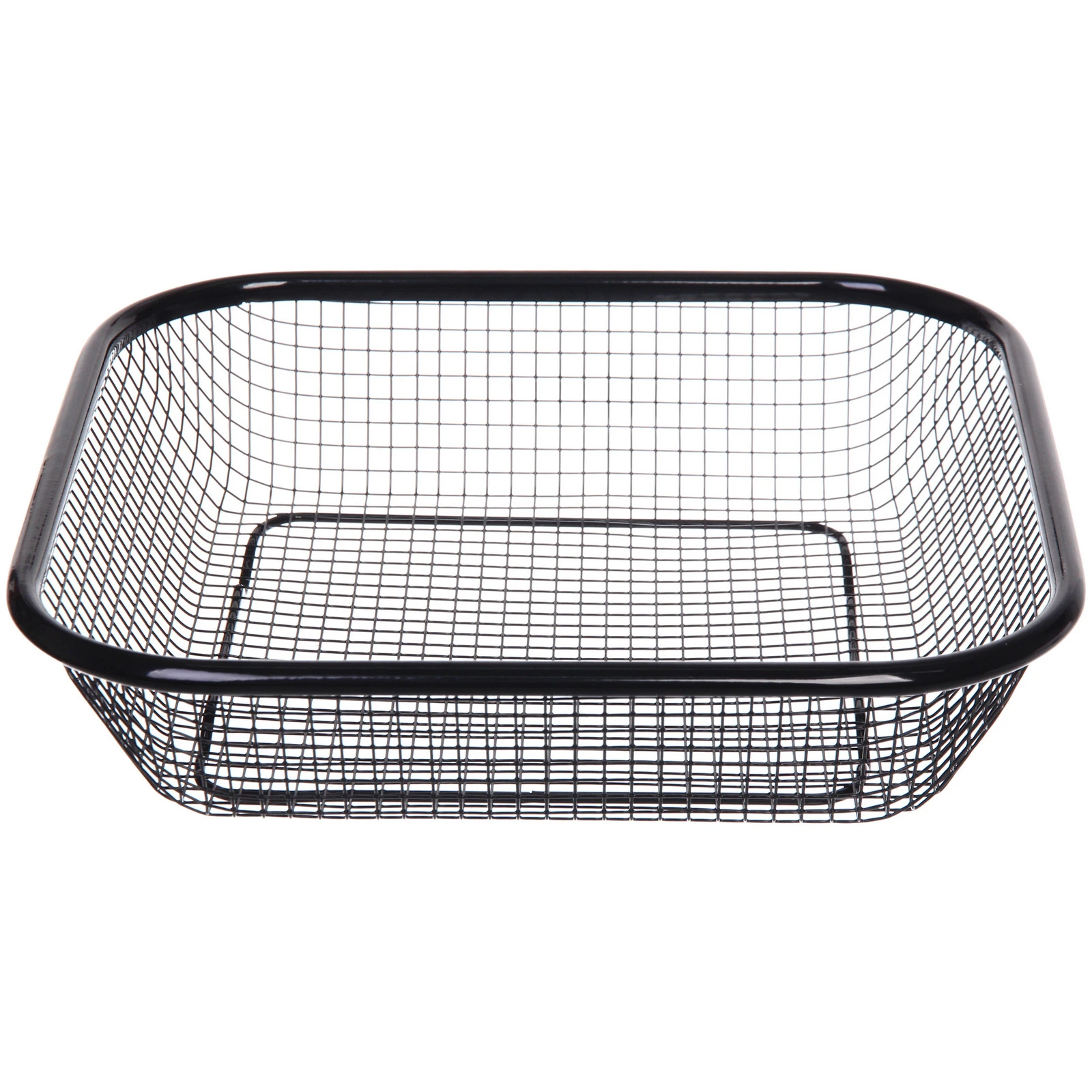 - Практичная конструкция: мелкая квадратная сетка обеспечивает хорошую вентиляцию, а прочный металлический обод по верхнему краю придаёт корзине жёсткость и долговечность.