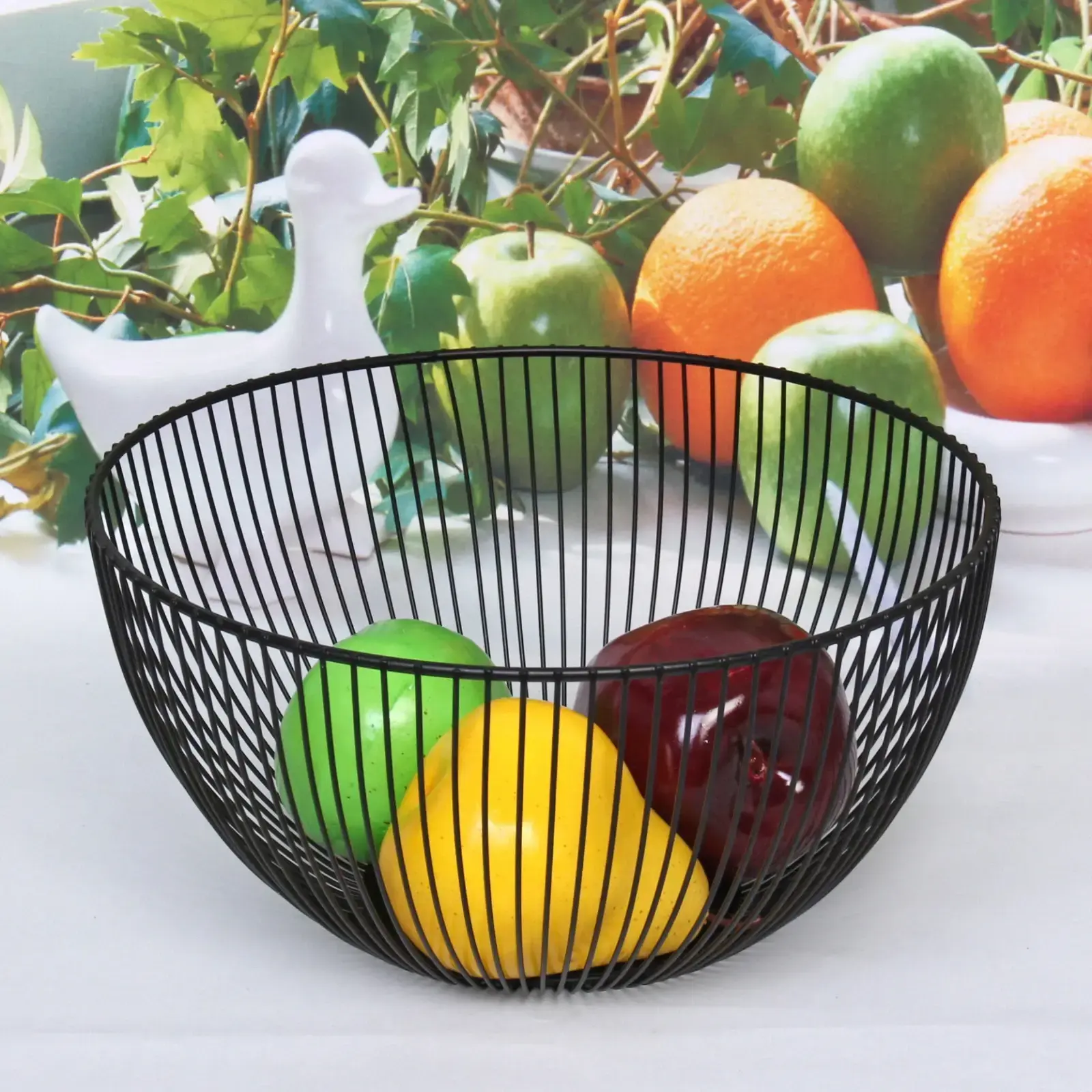 Фруктовница имеет размеры 25х13 см, что делает её идеальной для размещения на столе или кухонной поверхности. Открытая структура позволяет легко видеть содержимое, а черный цвет добавляет элегантности. Она прекрасно подходит для хранения свежих фруктов, а также может использоваться для сервировки закусок на праздниках и семейных встречах.