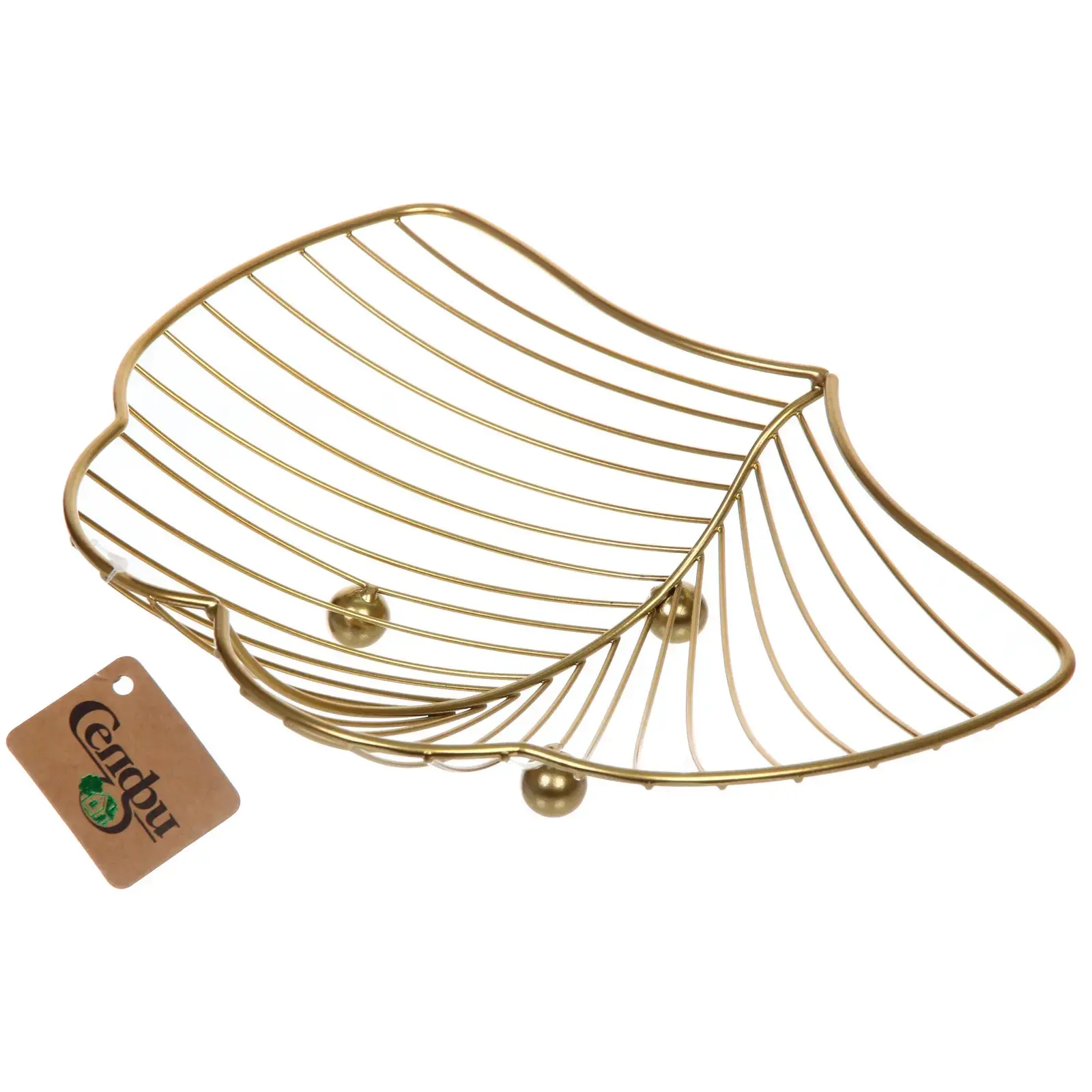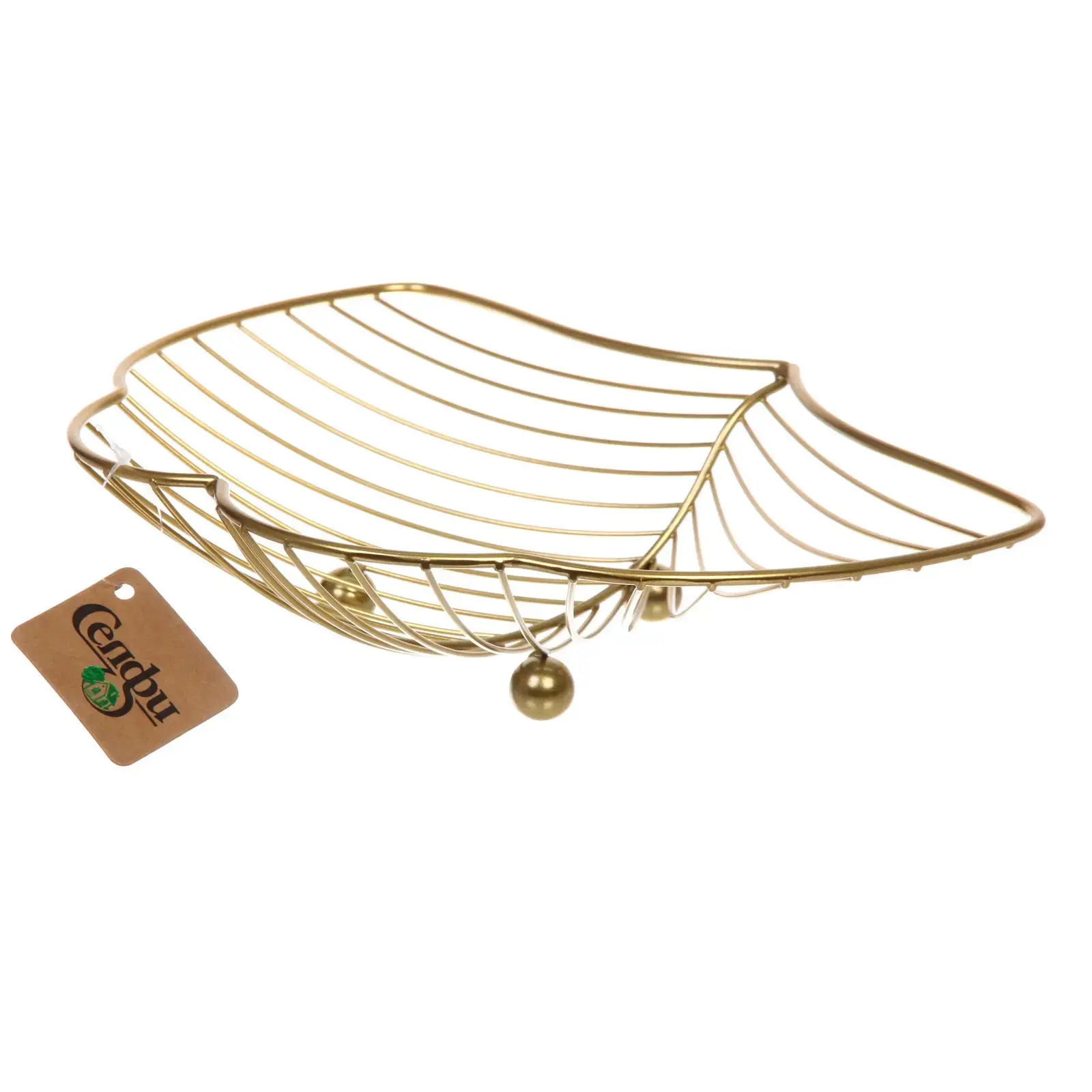 Фруктовница выполнена в золотистом цвете, что делает её универсальной для сочетания с различными стилями оформления. Тонкие металлические прутья создают легкий и воздушный вид, а три шарика в нижней части обеспечивают устойчивость. Эта фруктовница станет отличным подарком для друзей и близких, а также прекрасным дополнением к вашему домашнему декору.