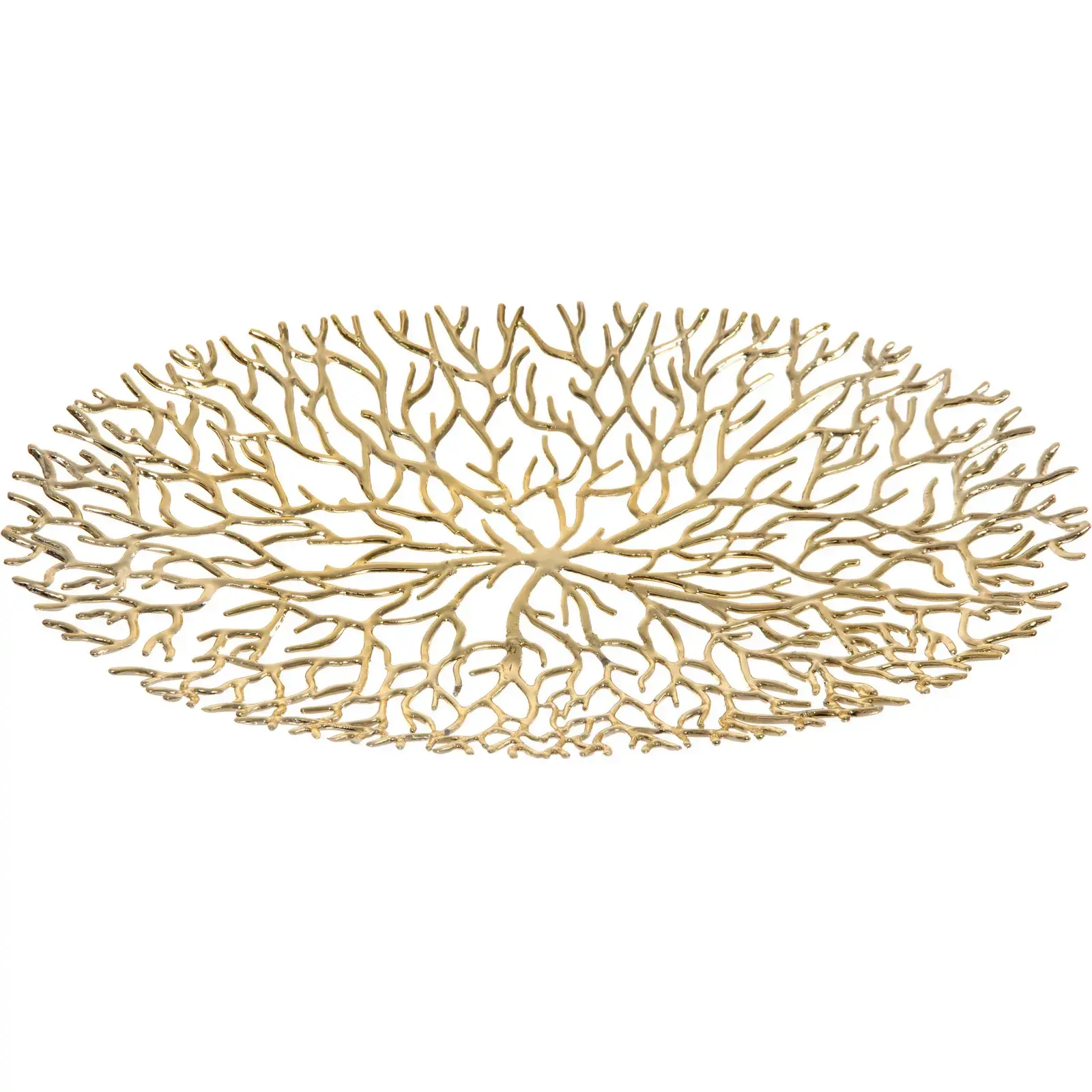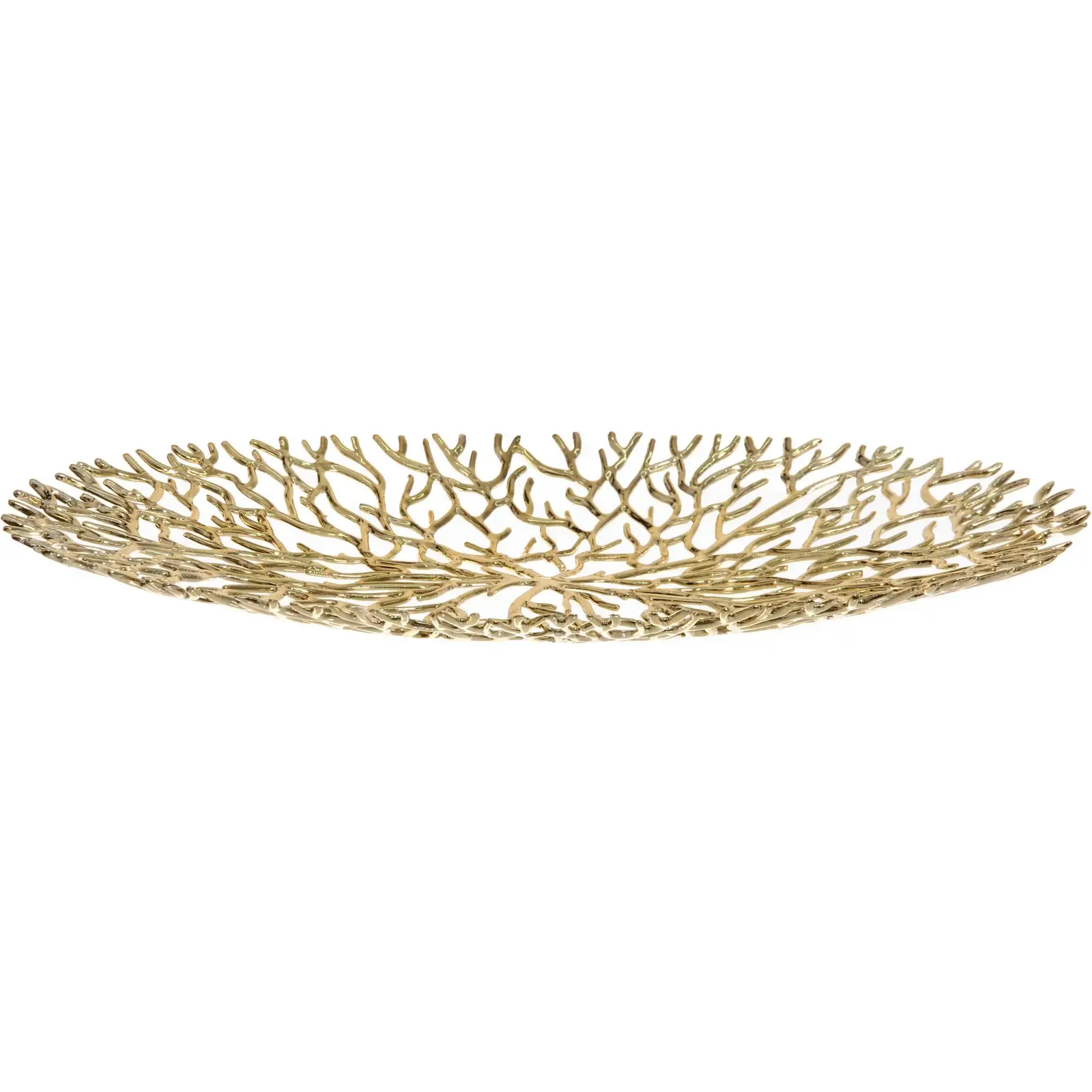 Фруктовница «Charm» — это не просто посуда, а настоящий элемент декора, который добавит изысканности и стиля в ваш интерьер. Изготовленная из прочного металла и выполненная в золотистом цвете, она станет ярким акцентом на любом столе. Овальная форма и детализированный дизайн, напоминающий коралловые рифы, создают эффект легкости и воздушности, что делает этот предмет идеальным для сервировки фруктов, сладостей или закусок.