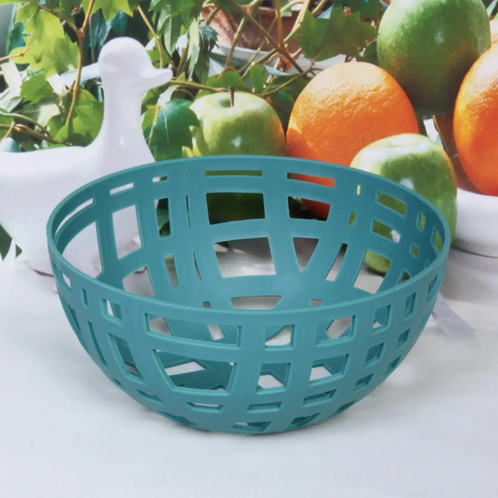 Пластиковая корзина «Астория» сочетает практичность и эстетику, создавая идеальные условия для хранения фруктов, овощей или декоративных предметов. Сетчатая конструкция обеспечивает циркуляцию воздуха, сохраняя продукты свежими дольше, а лаконичный дизайн в цвете морской волны гармонично впишется в любой интерьер.