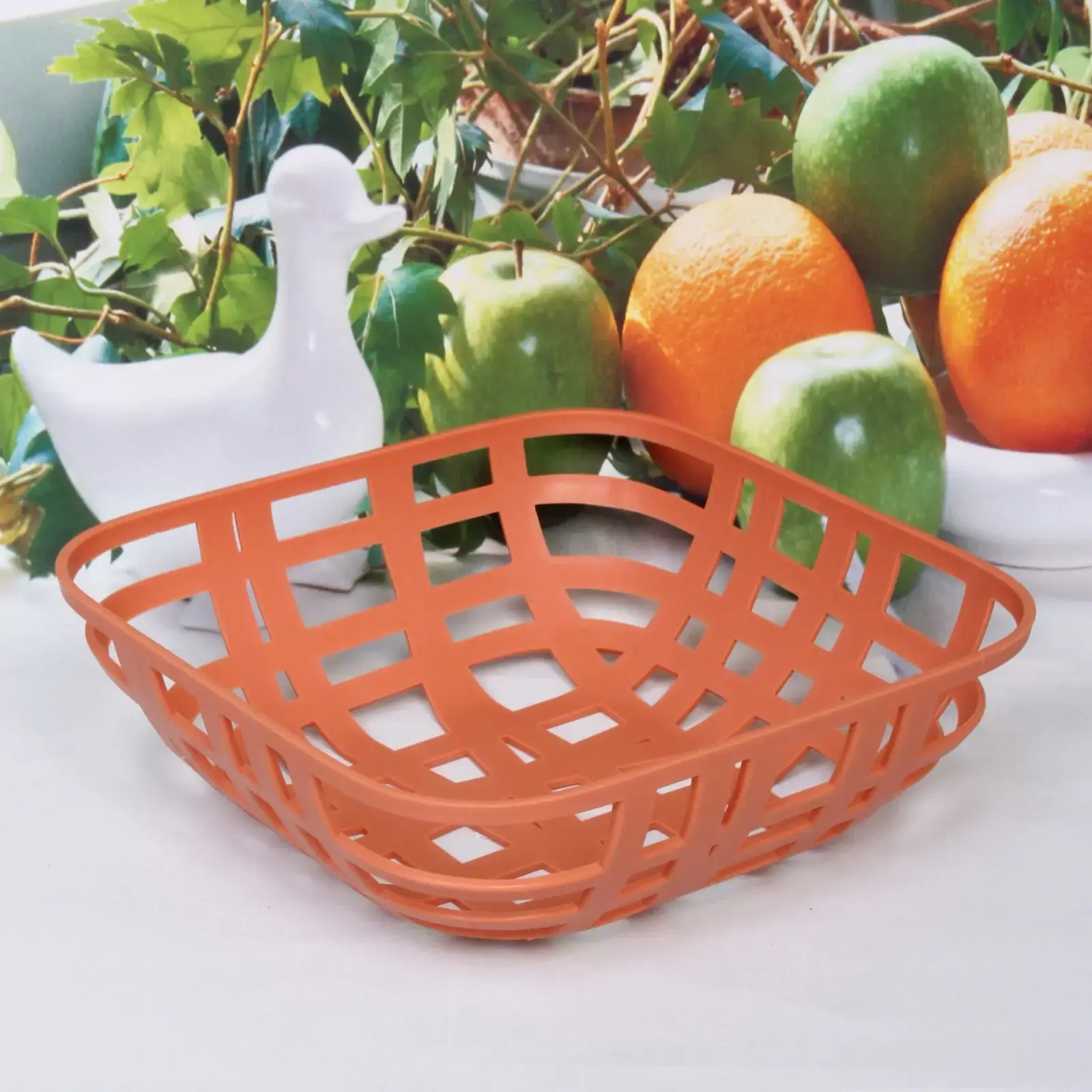 Фруктовница «Астория» пластиковая 23х23х7,5см, квадратная решетчатая, цвет тициан
