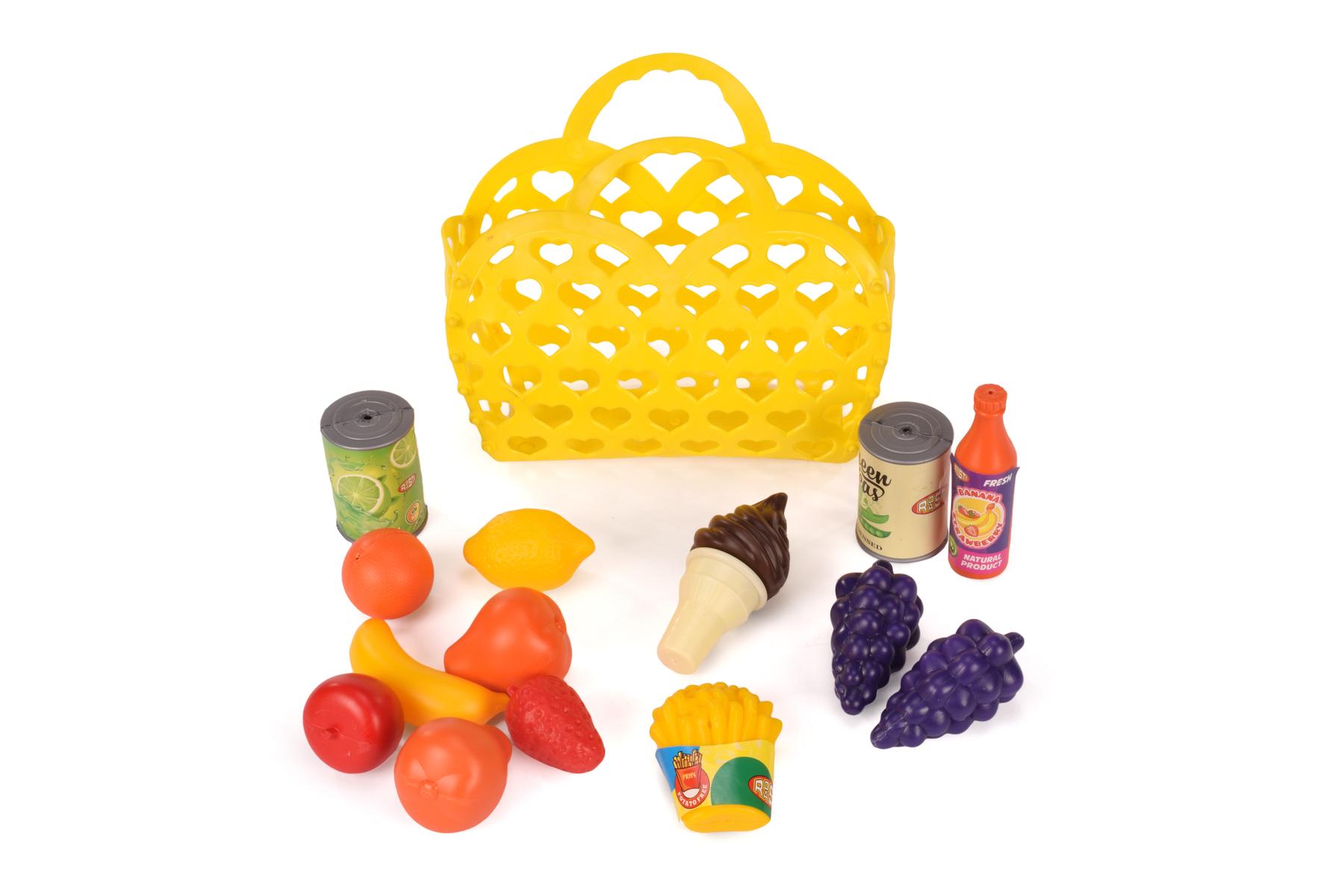 Подходит детям от 3 лет, стимулирует сюжетные игры и развитие речи. Корзина с ручками удобна для переноски и хранения. Материал изготовления — безопасный пластик высокого качества, яркие цвета делают игру еще более привлекательной. Размеры позволяют удобно взаимодействовать малышу и разыгрывать сценки в магазине или на кухне. Такой набор поможет развить тактильные ощущения, воображение и навыки социализации, делая игру интересной и полезной.