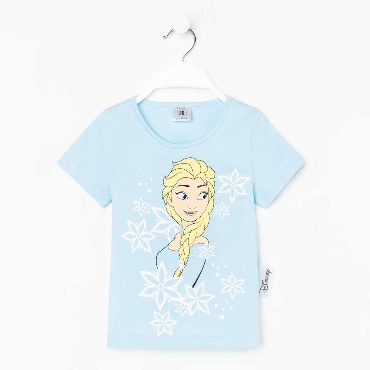 Футболка для девочек «Frozen» — яркий голубой цвет, размер 86‑92, 100 % хлопок, удобный крой, надёжный принт Disney