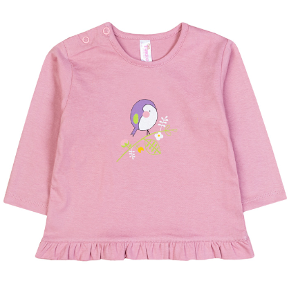 Детский фасон с круглым вырезом и удобными кнопками на левом плече обеспечивает лёгкое надевание и быстрый доступ к смене подгузника. Сиреневый оттенок ярко выделяется, но остаётся нежным, что делает вещь подходящей как для повседневных прогулок, так и для торжественных мероприятий.