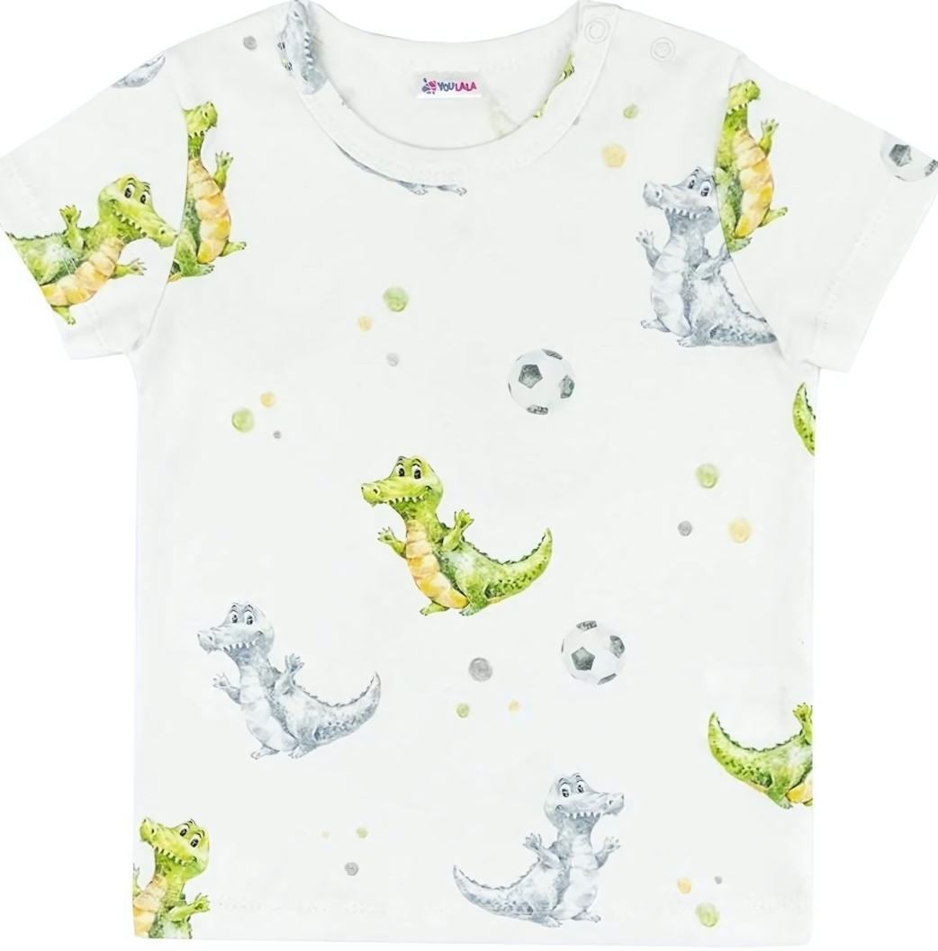 Футболка интерлок r.92‑98, цвет белый, хлопок, принт крокодилов и футбольных мячей, мягкость и свобода движений