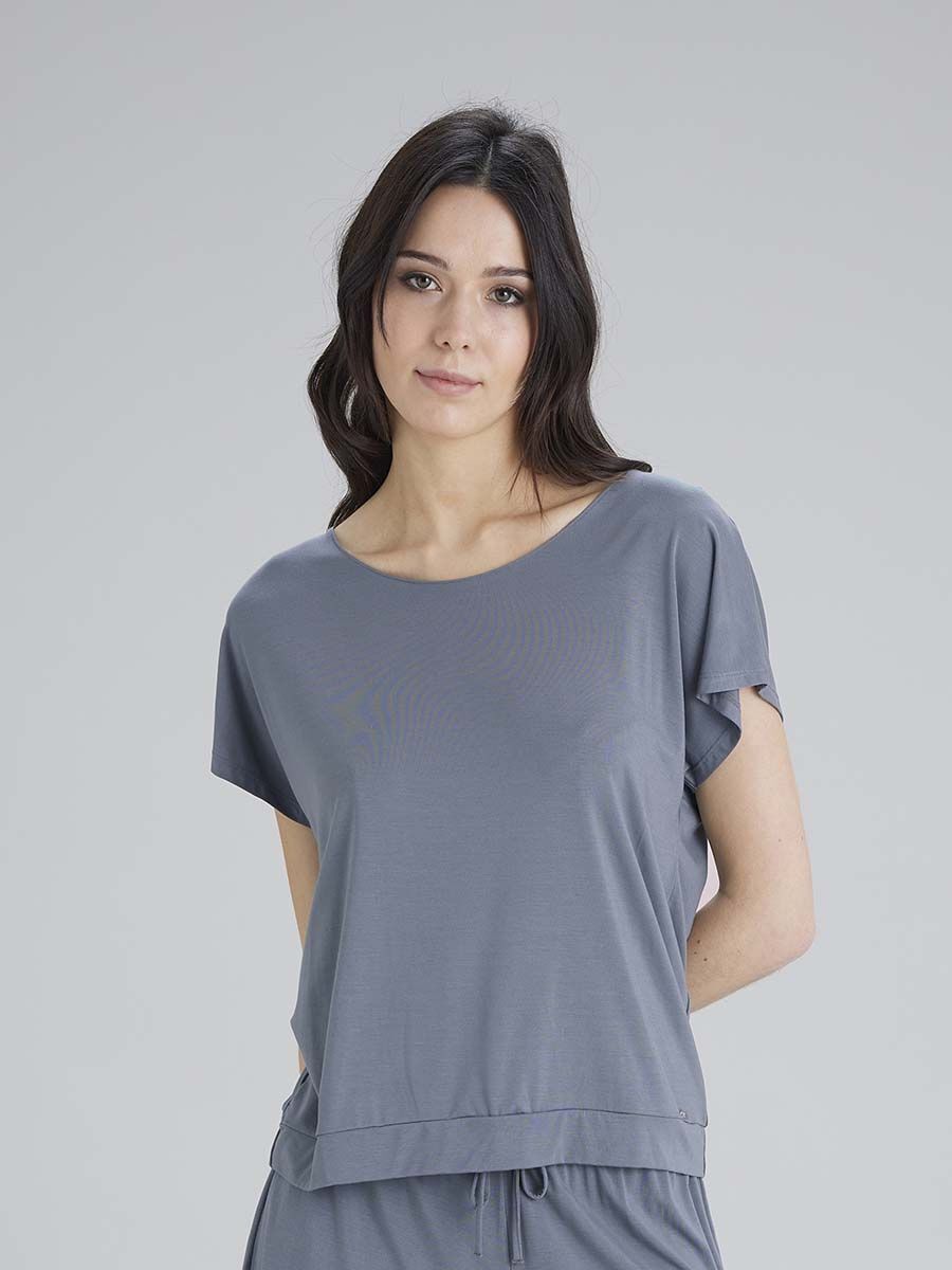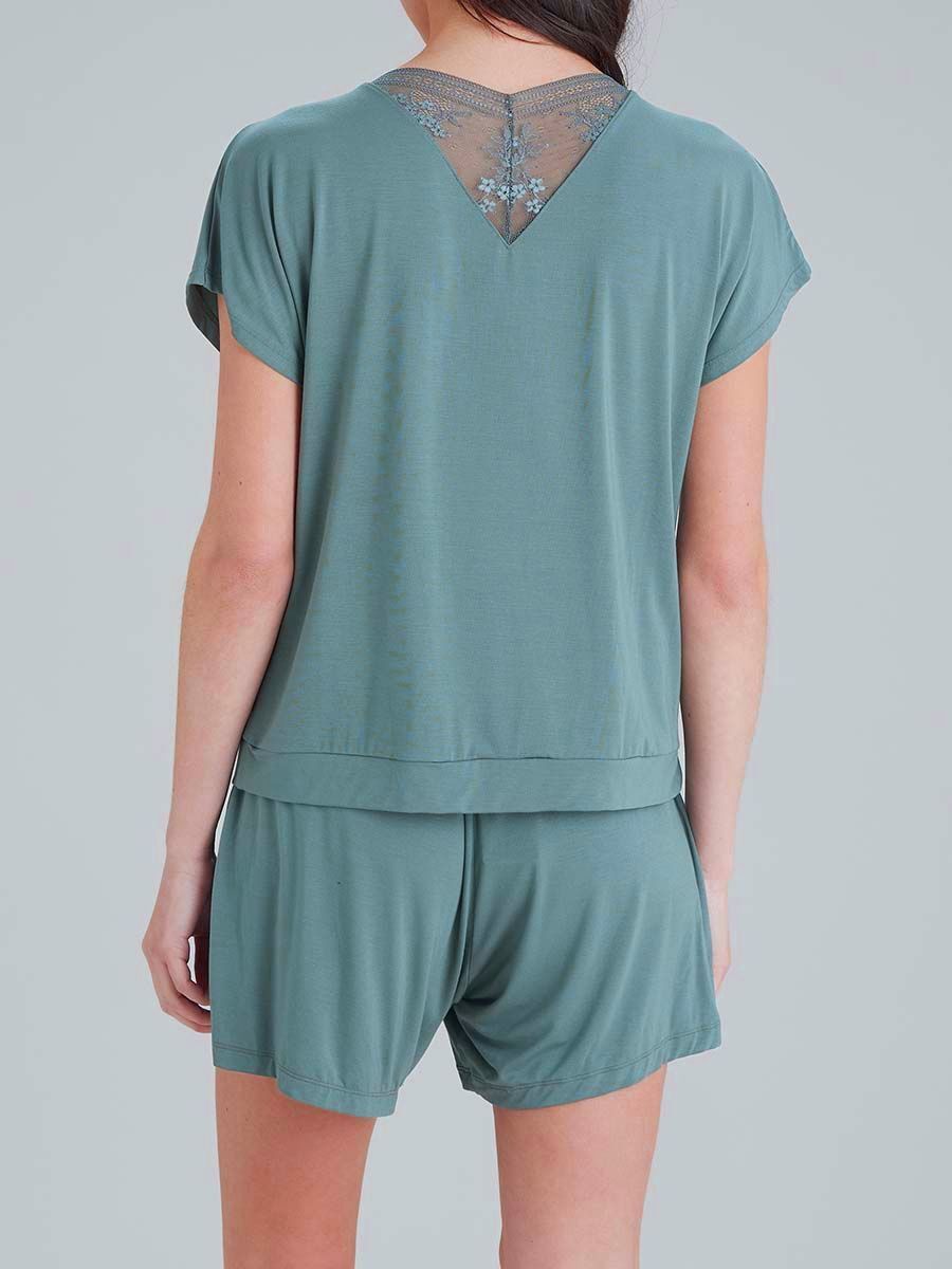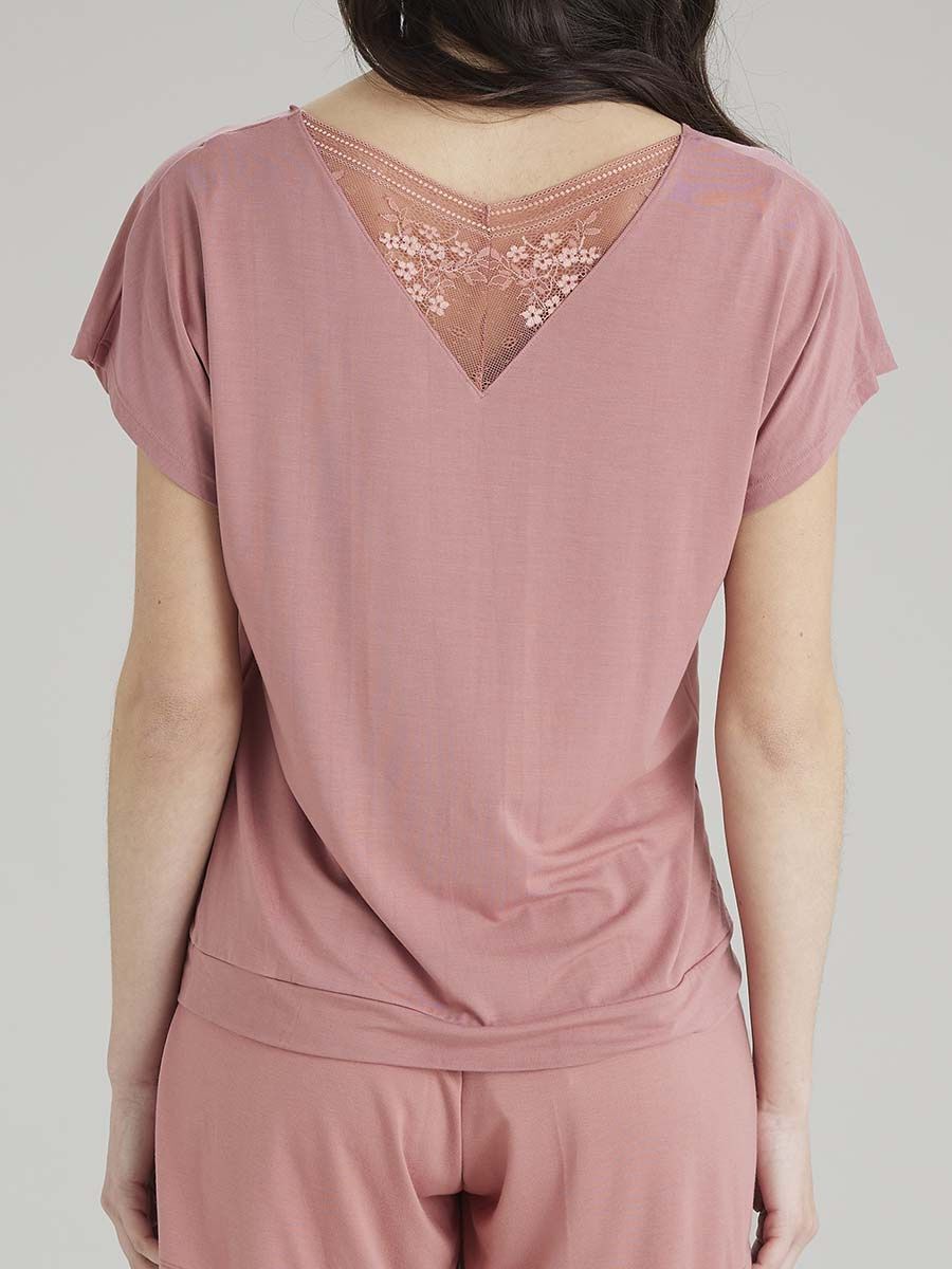 Погрузитесь в комфорт с футболкой из дышащей вискозы, созданной для сна и домашнего уюта. Эластичный материал с добавлением спандекса мягко облегает тело, сохраняя свободу движений, а изящное кружево на спине добавляет нотку женственности.