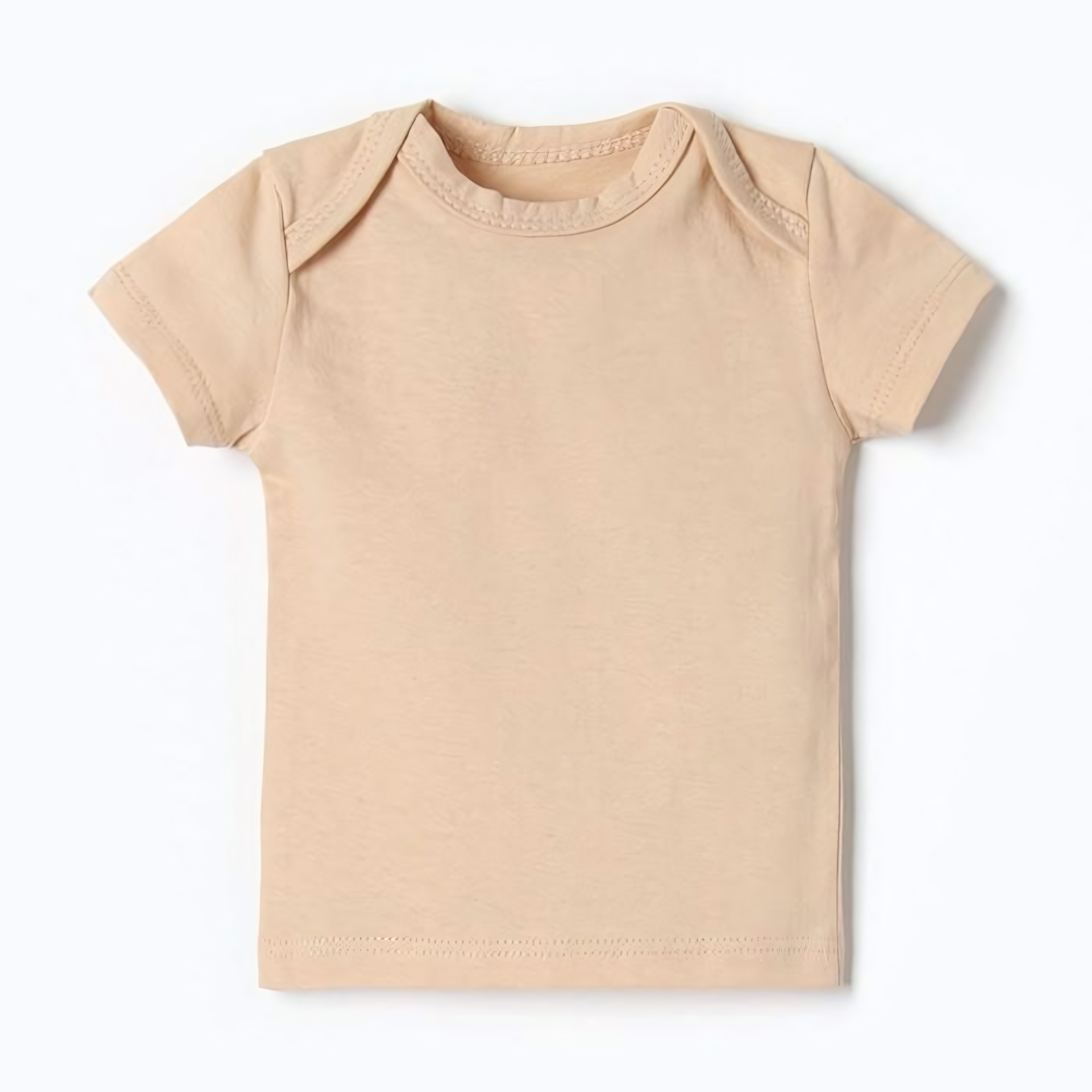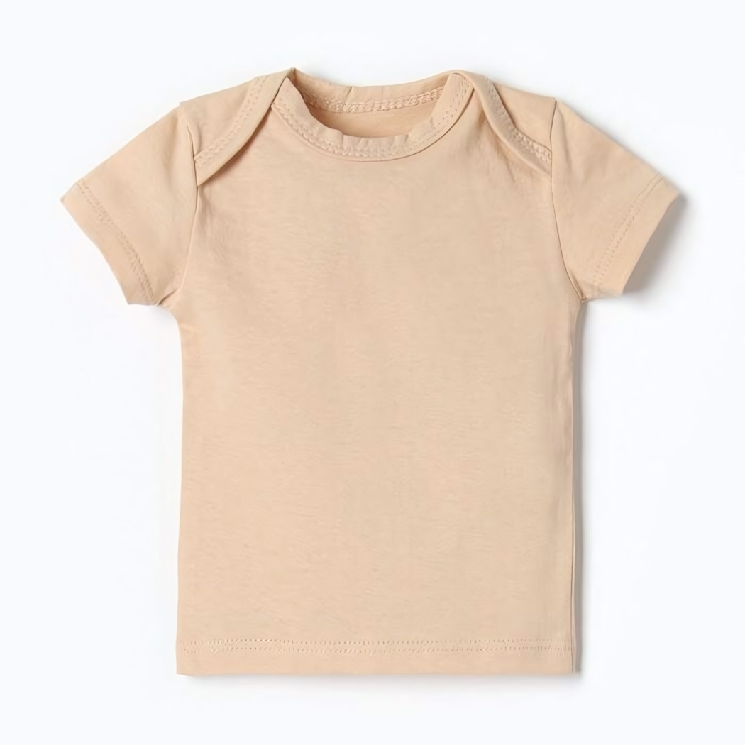 Модель с коротким рукавом и округлым вырезом горловины легко надевается и снимается, что особенно важно для активных детей и родителей, которые ценят своё время. Бежевый цвет гармонично сочетается с любыми элементами гардероба и подходит как для повседневных прогулок, так и для дома.