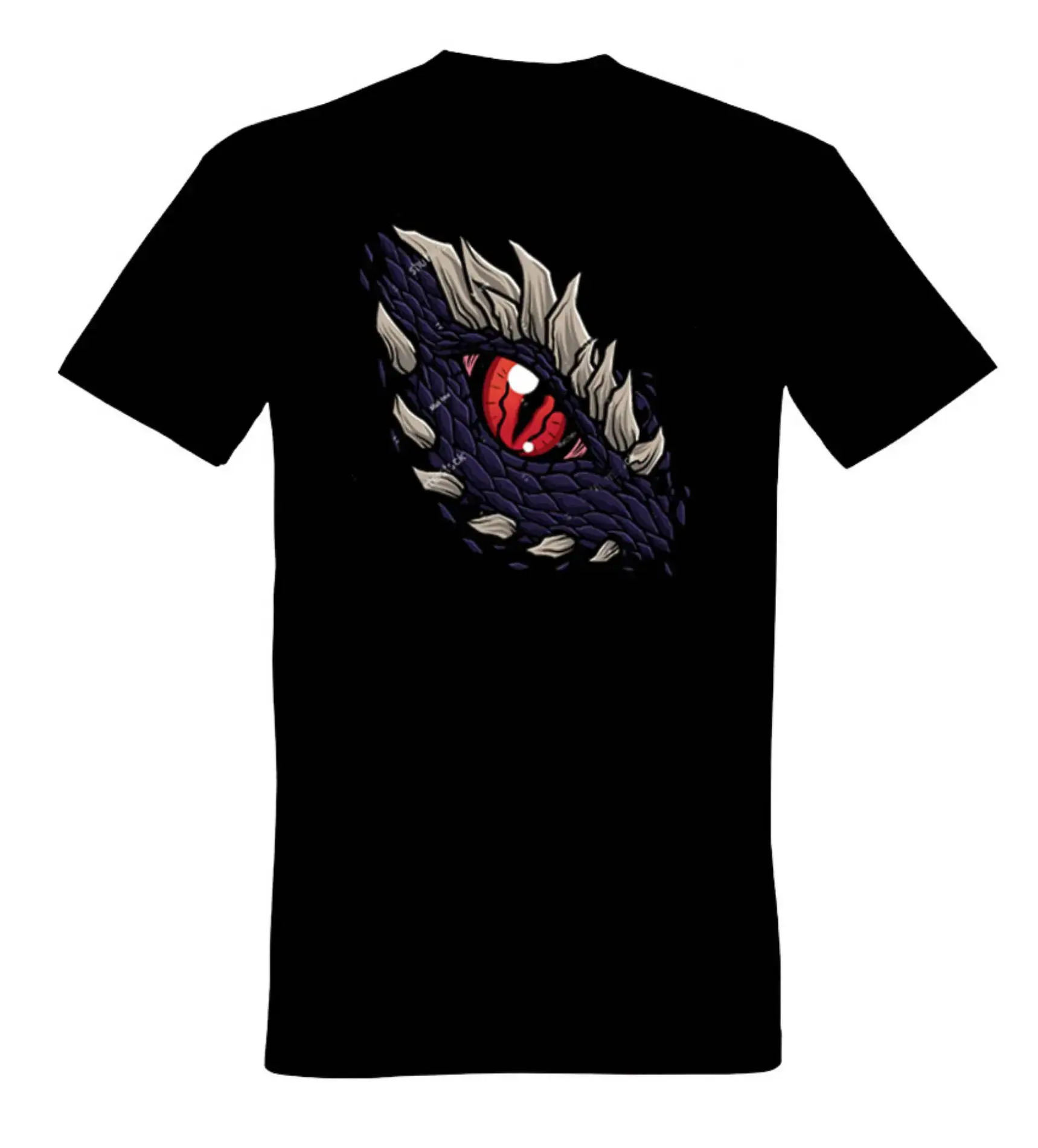 Центральным элементом футболки является завораживающий принт «Дракон Моргул». Изображение выполнено с высокой детализацией: ярко-красный глаз со змеёй внутри, окруженный текстурой, напоминающей чешую, создает поистине свирепый и мистический образ. Этот дизайн не оставит равнодушным ценителей оригинальных принтов и фэнтези-тематики.
