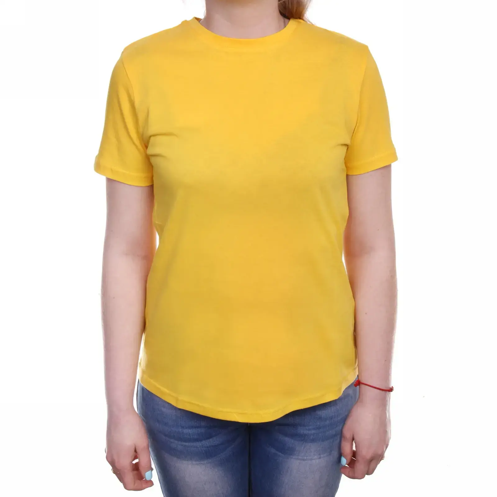 Футболка женская желтая приталенная, 100% хлопок Супрем, р.44 (ОГ-78/ОТ-72/ОБ-74)