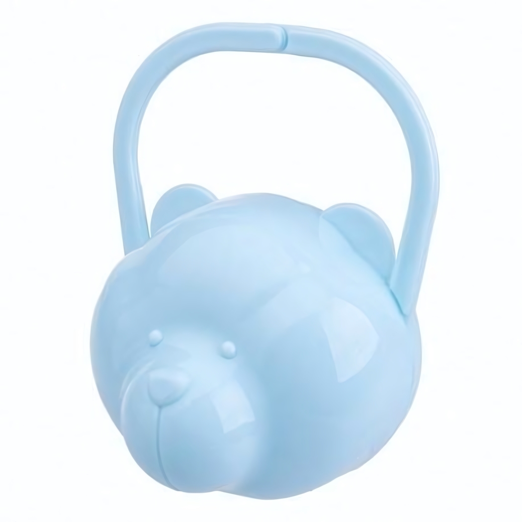 Футляр выполнен из качественного пластика, который обеспечивает надежную защиту. Его светло-голубой цвет и милый дизайн в форме медвежонка делают его привлекательным для детей. Размеры футляра идеально подходят для хранения пустышек и других мелочей, что делает его универсальным аксессуаром для вашего малыша.