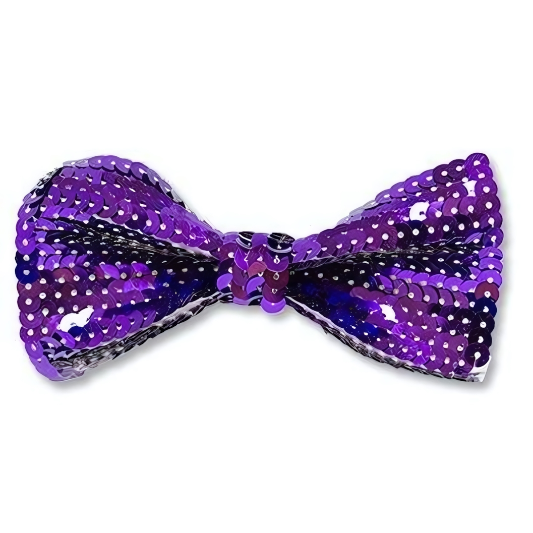 Фиолетовая галстук-бабочка с пайетками станет ярким акцентом вашего образа. Блестящие детали добавляют особого шарма и привлекают внимание в любой обстановке.