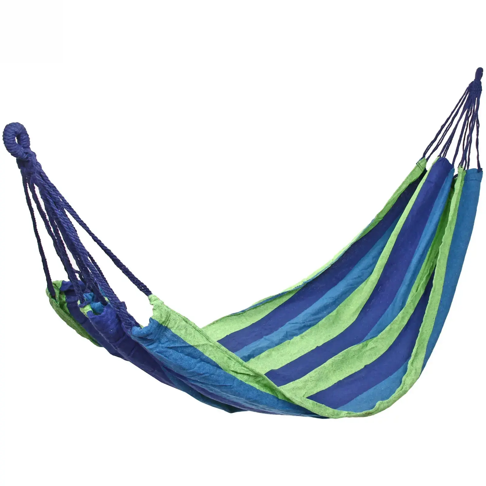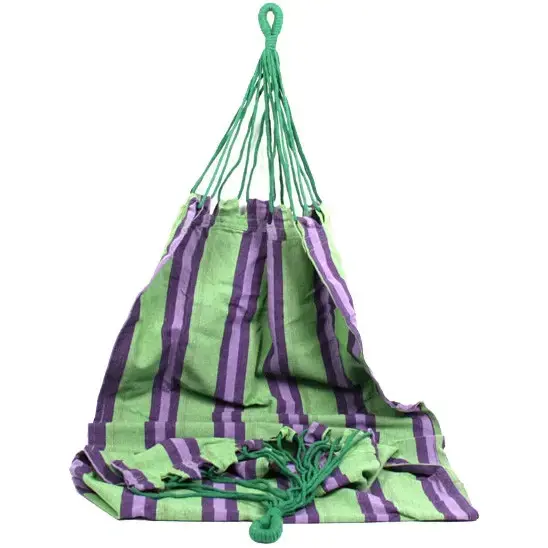 Гамак выполнен из хлопка, что гарантирует его прочность и комфорт. Он поставляется в компактной сумке, что облегчает его хранение и переноску. Размеры 200х80 см позволяют разместиться в нем с комфортом, а стильный дизайн делает его привлекательным дополнением к вашему отдыху на природе.